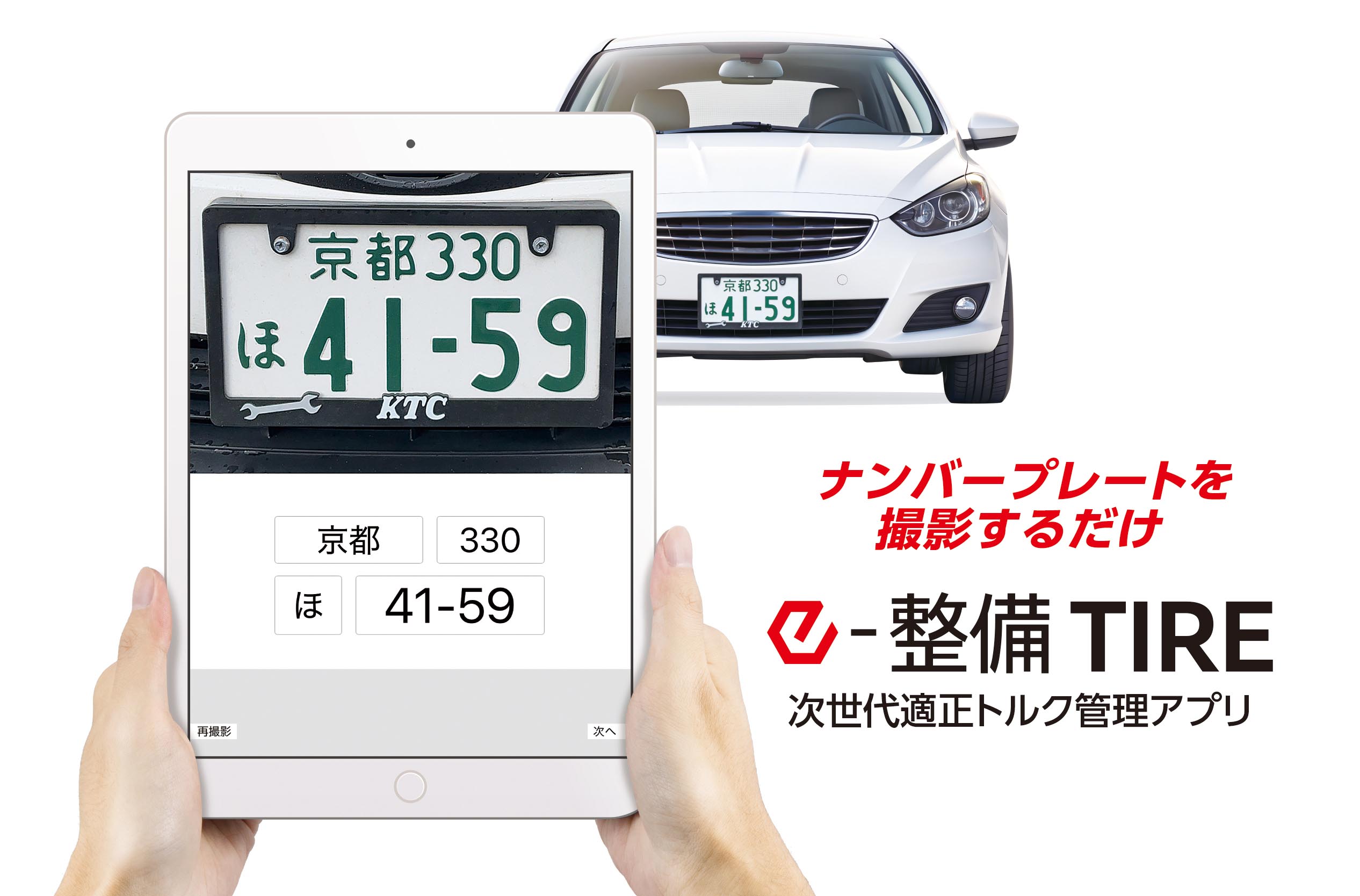 アプリをインストールしたタブレットなどの端末で入庫車両のナンバープレ―トを撮影するだけで、ホイールナットの規定トルク値を自動で取得、TORQULE(トルクル)シリーズなどのスマートデバイスと接続する ことで、目標トルク値が自動的にデバイスに設定され、作業にかかる準備時間の手間が大幅に軽減できる。