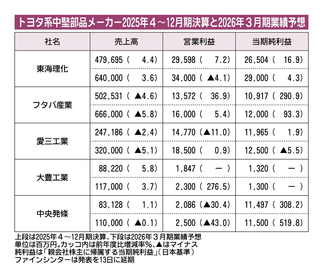 トヨタ系中堅部品5社の2025年4~9月期決算、通期は3社が上方修正 米国関税や為替不透明で