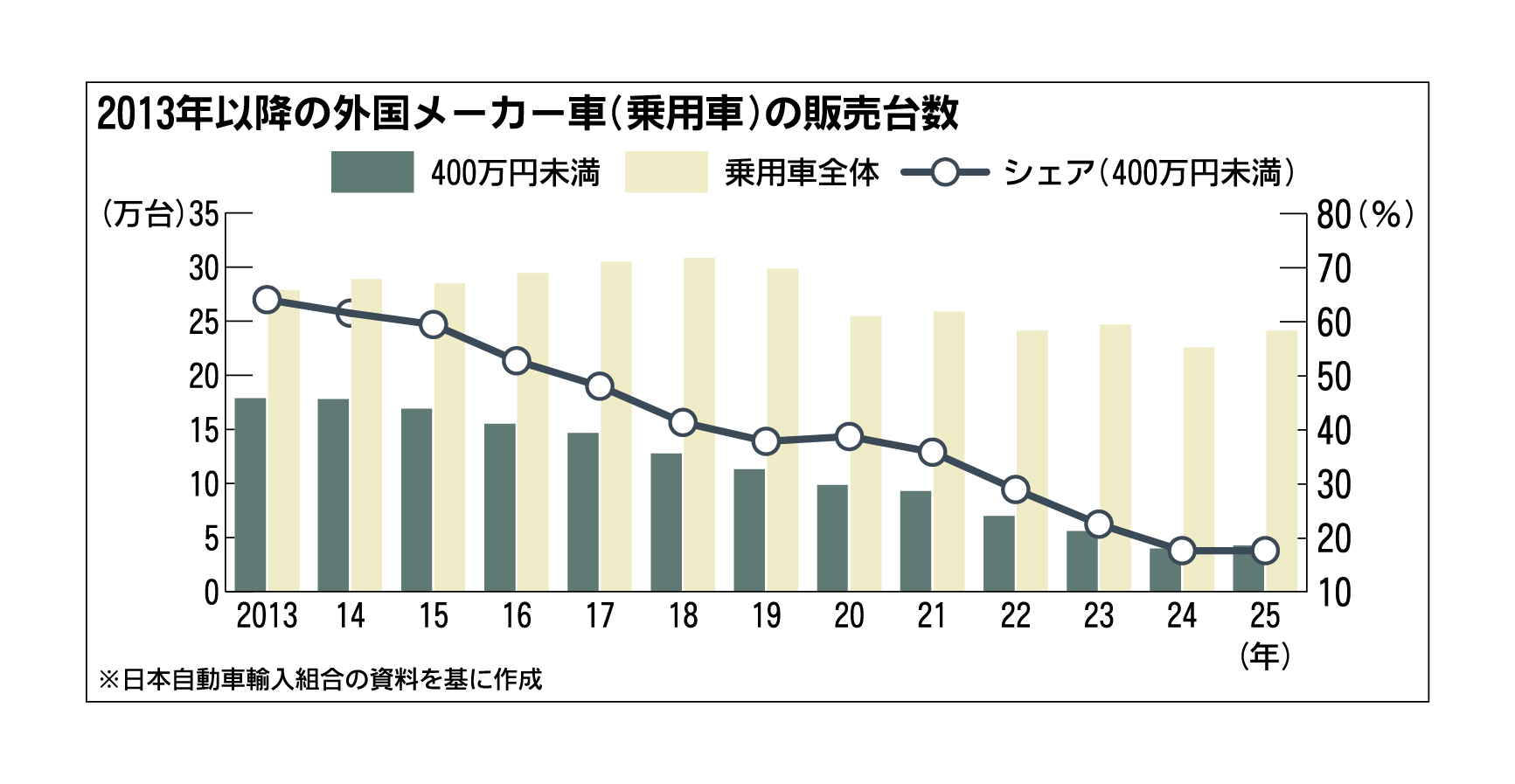 輸入車市場、高価格帯にスライド 400万円未満は約1割に 物価上昇や円安も影響