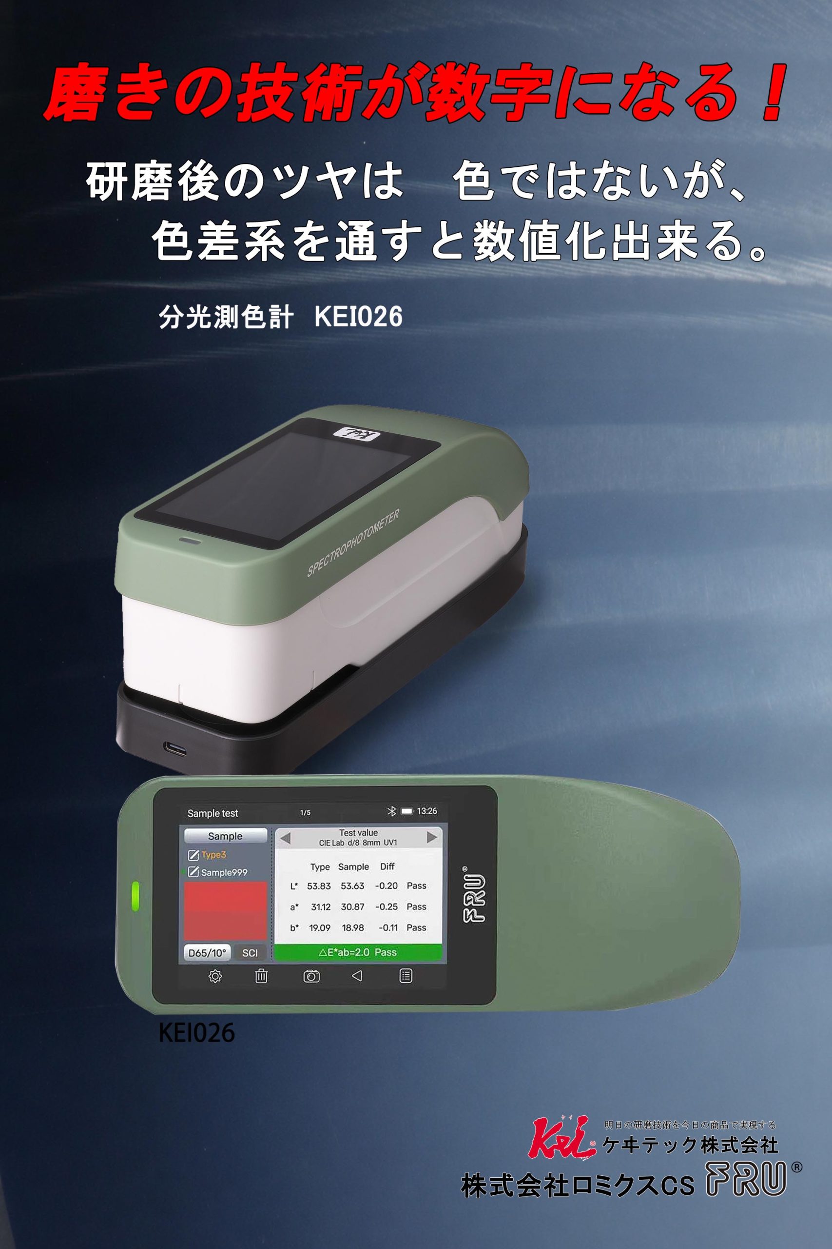 4)きれいになった状態を数字で評価するために、試作品の積分球式分光測色計KEI026を利用して、評価する方法を説明する。なぜ、色差系を利用すると人のきれいさの感覚が数値で表すことができるかを詳説する。