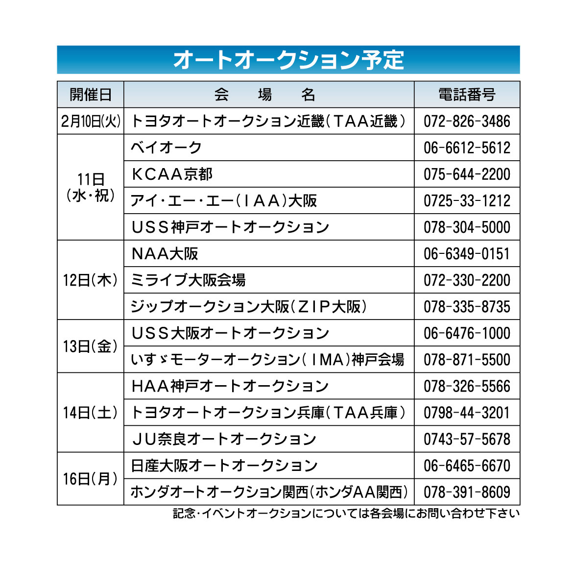 〈オートオークション予定〉近畿地区 2026/2/10~16