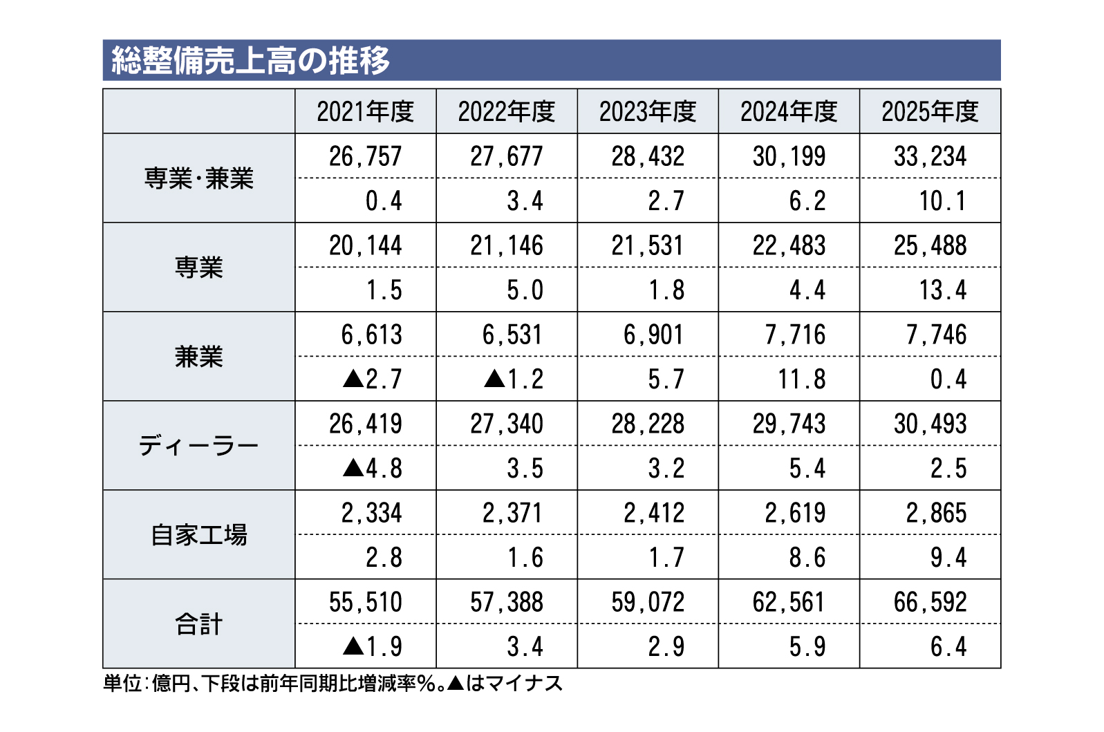 日本自動車整備振興会連合会(日整連、喜谷辰夫会長)がまとめた2025年度の「自動車特定整備業実態調査」によると、自動車整備総売上高は前年度比6.4%増の6兆6592億円と2年連続で6兆円を上回った。整備要員の平均年収も同4.0%増の442万...