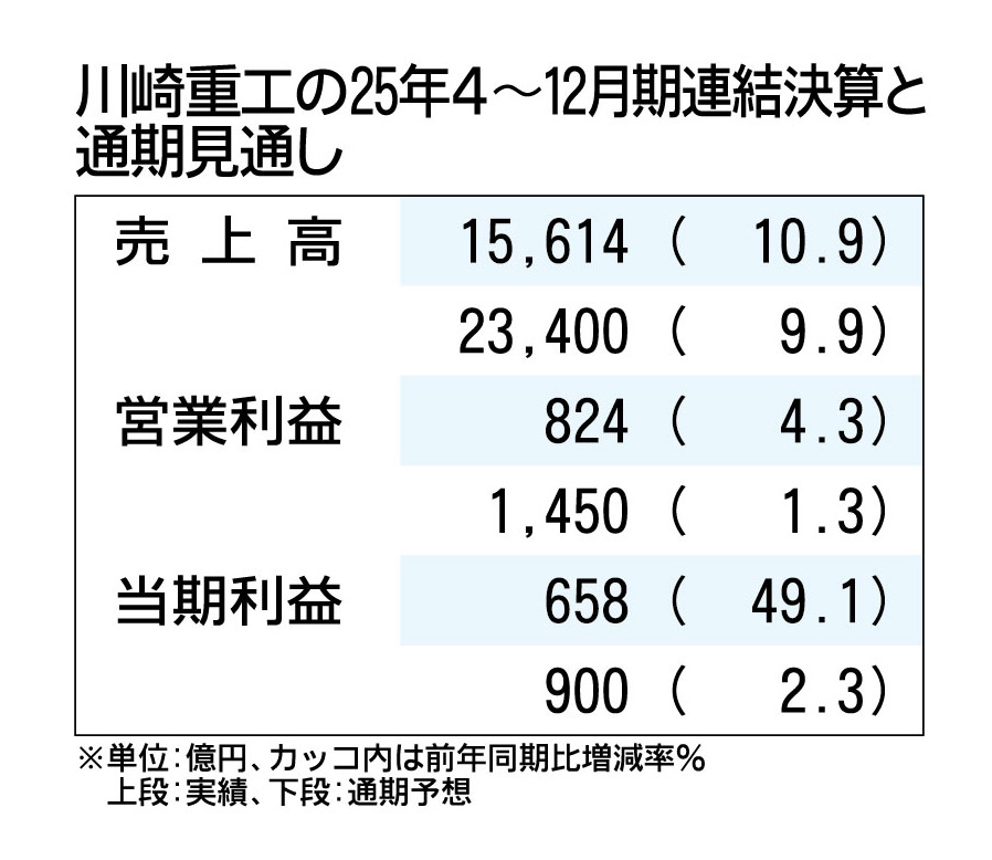 川崎重工、2025年4~9月期は増収減益