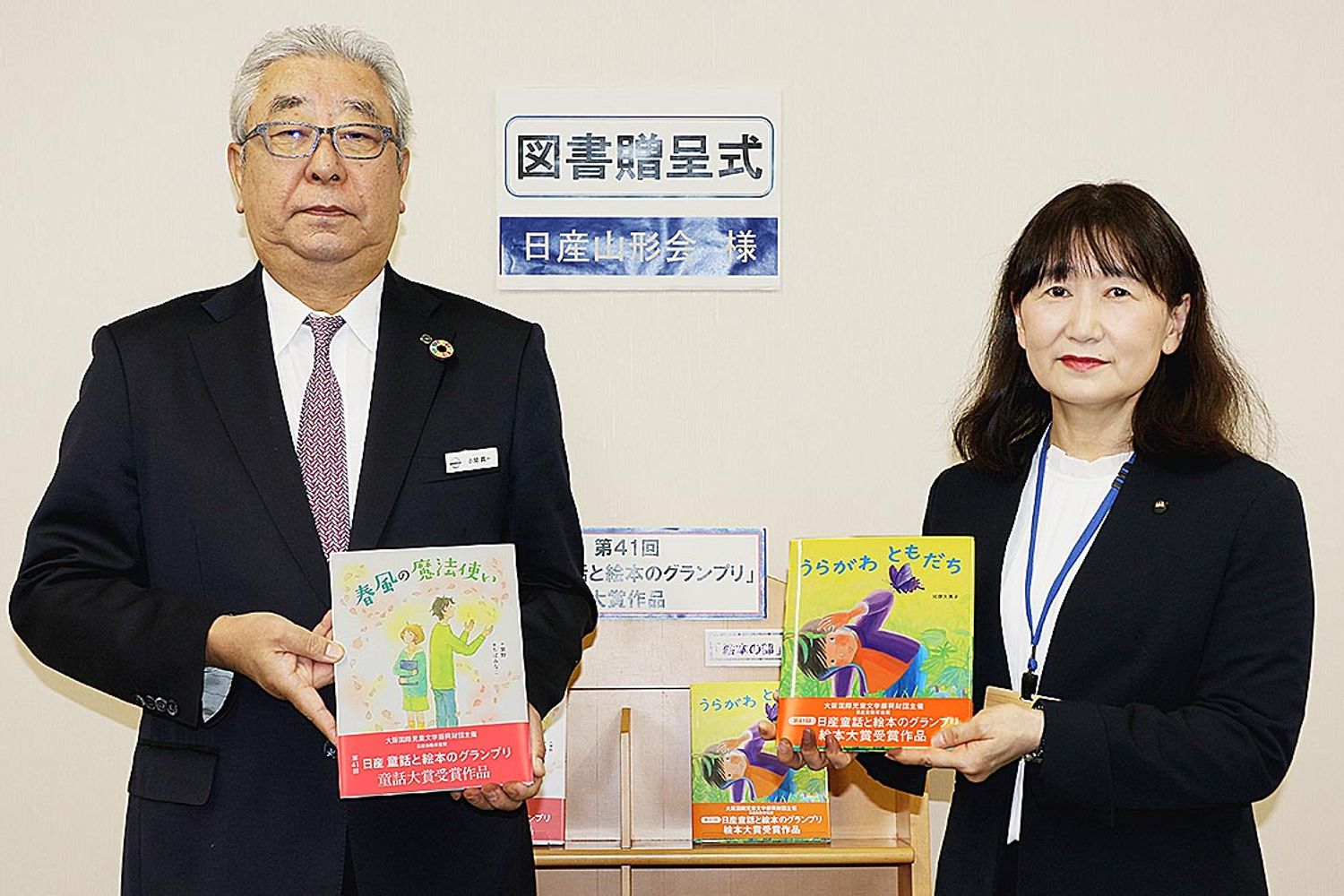 日産山形会、県立図書館などに童話と絵本を寄贈