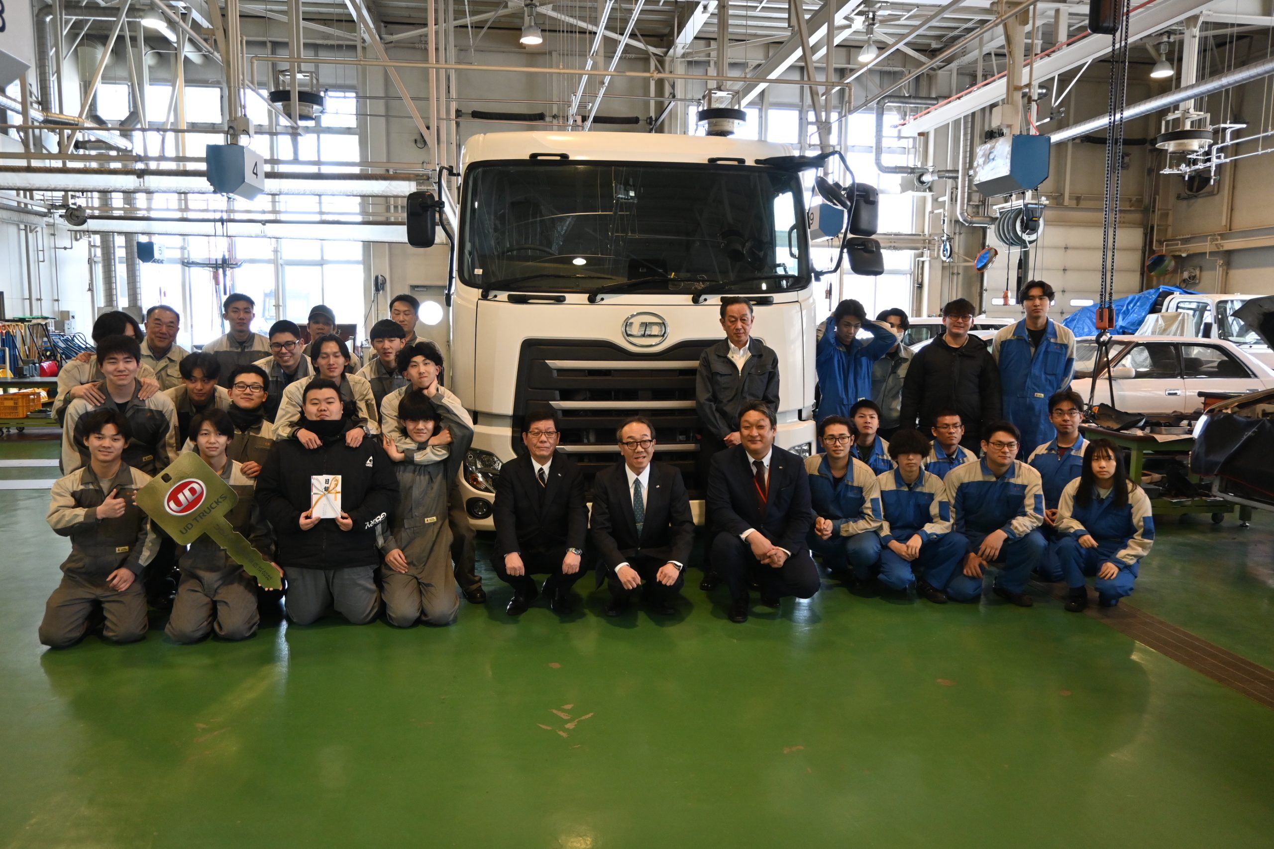 UDトラックス道東、帯広技専に大型車「クオン」を寄贈 講師派遣や工具提供も