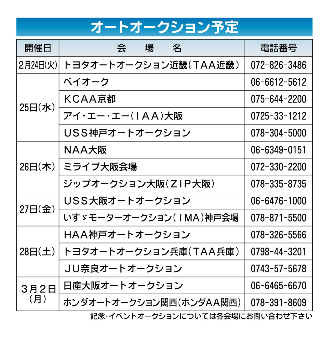 〈オートオークション予定〉近畿地区 2026/2/24~3/2