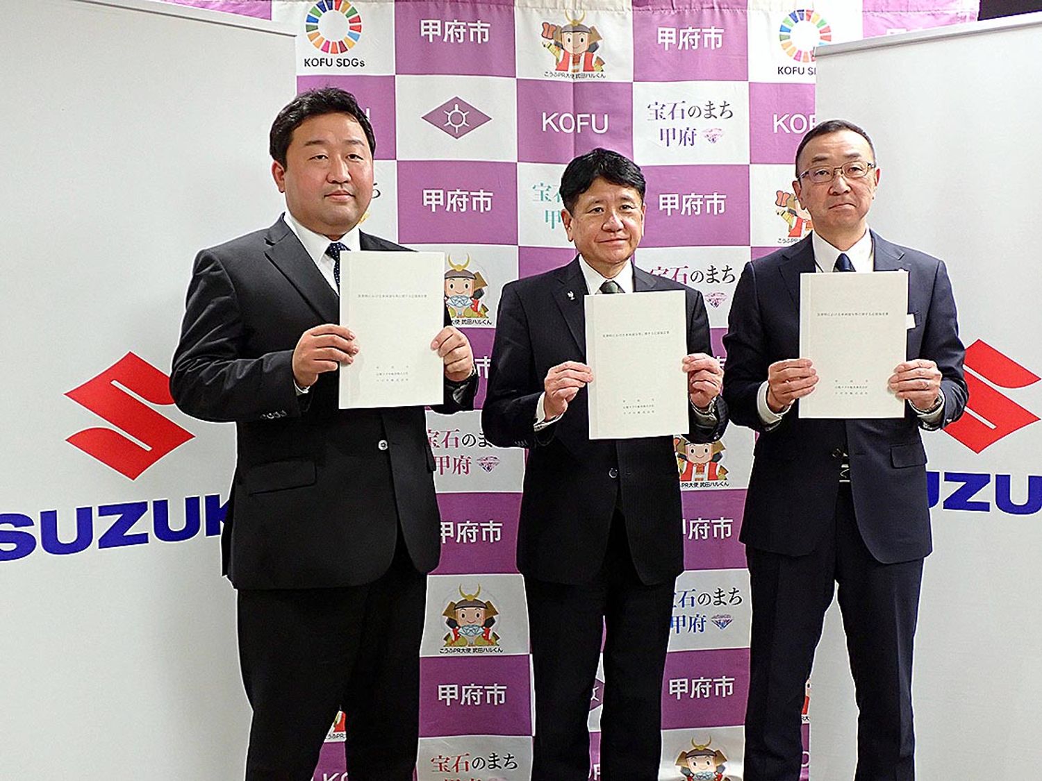 【甲府】山梨スズキ(荻原茂宏社長、山梨県甲府市)およびスズキ、甲府市の三者は、甲府市役所で「災害時における車両貸与等に関する応援協定」を締結した。台風や地震など大規模災害が発生、または発生する恐れがある場合に、車両貸与などの応援を実施する...