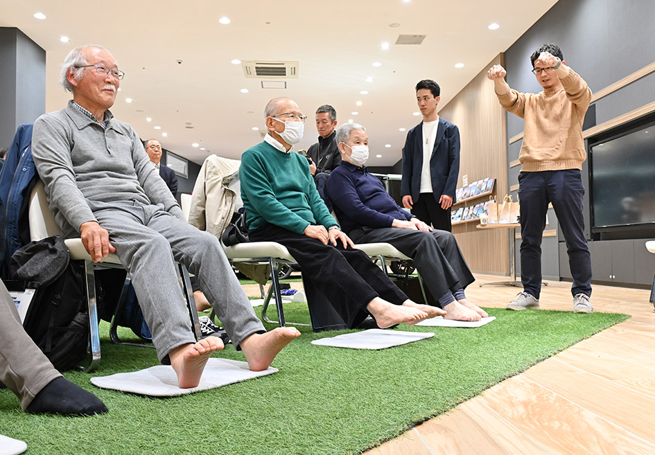 「むすんでひらいて 手をうってむすんで」―。日産は2月24日、ららぽーと湘南平塚(神奈川県平塚市)内の「ウォークイン店舗」で体操の体験イベントを開いた。参加者は足指や足首を数分間、馴染みのある童謡のメロディーに合わせて動かした。川崎市の男性(78)は数分で握力が倍増したといい、「これだけ効果が出るとは思わなかった。普段は意識して動かさないが、科学的な証拠があるのが良い」と話す。