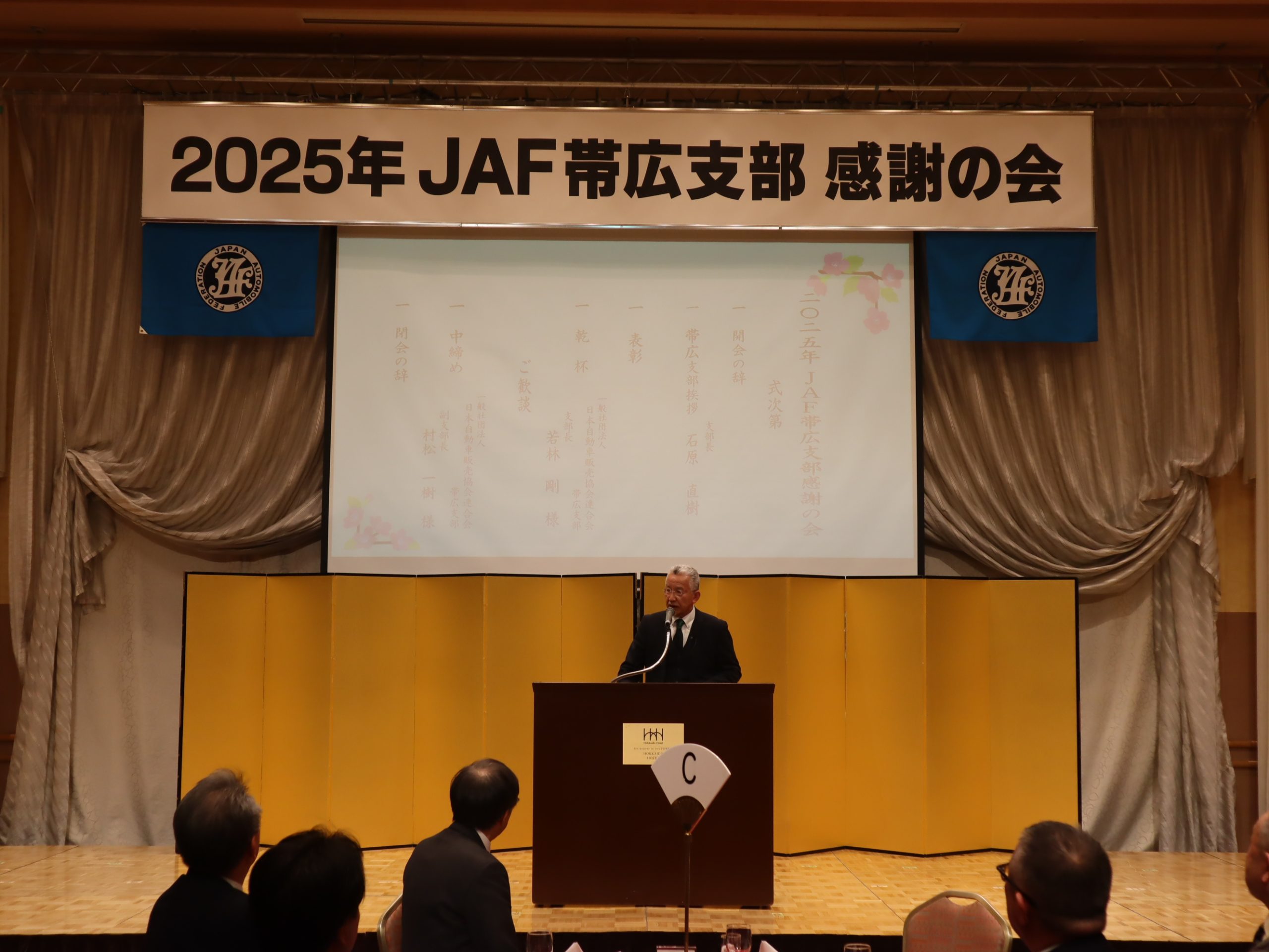 日本自動車連盟(JAF)帯広支部(石原直樹支部長)は、帯広市内のホテルで「感謝の会」を開催した。2025年1~12月の会員増加促進運動で優秀な成績を収めた法人と個人に感謝状を贈呈した。2月13日の感謝の会で石原支部長は、「JAFでは、お客さ...