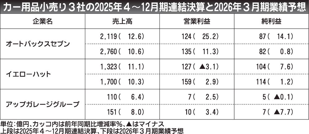 オートバックスセブン、2025年4~12月期決算は増収増益