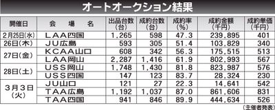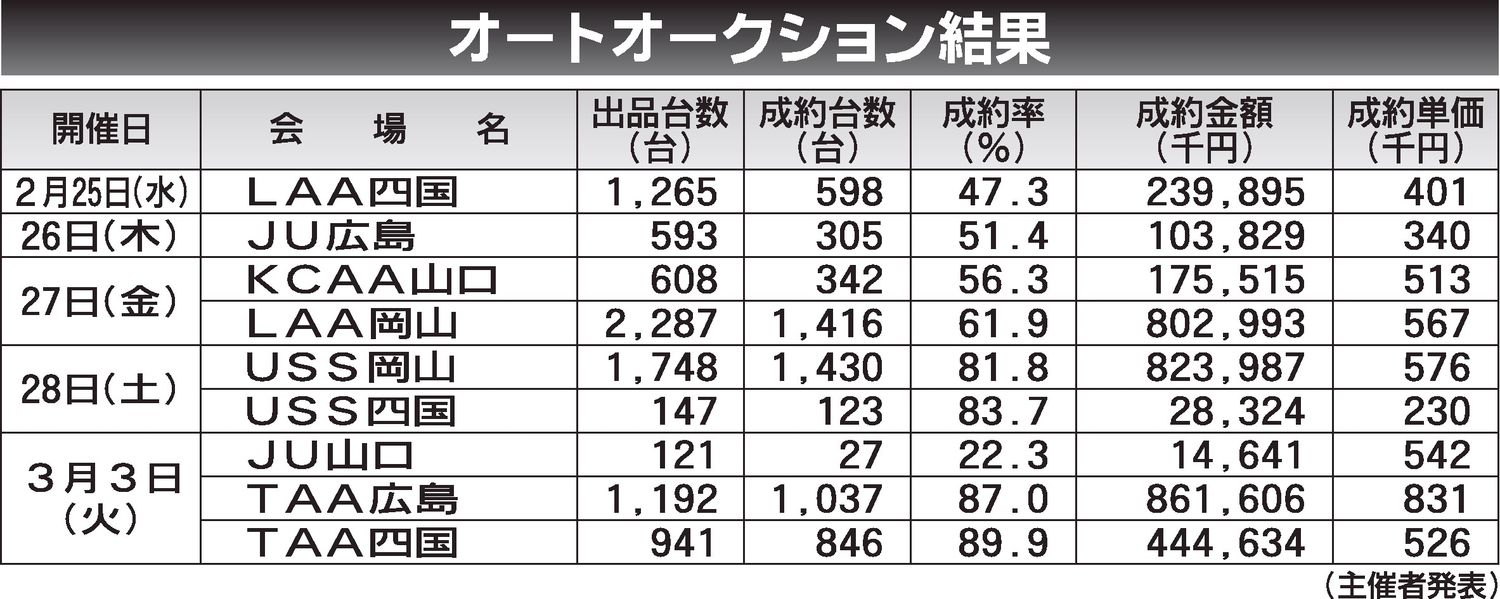 〈オートオークション結果〉中・四国地区 2026/2/25~3/3
