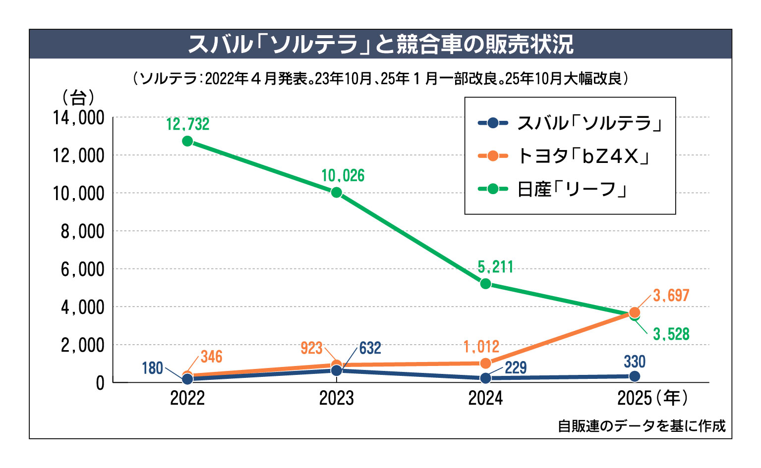 スバル、ソルテラを大幅改良 米国で今秋発売 航続距離は463km 338馬力のグレードも