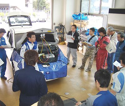 大阪府自動車整備商工組合(谷正昭理事長)はこのほど、大阪府自動車整備会館教育センター(大阪市住之江区)で、カーエアコンの車上点検のポイントを研修する「カーエアコン・点検診断セミナー」を開いた。同セミナーは本格的な夏シーズンを控え、カーエア...