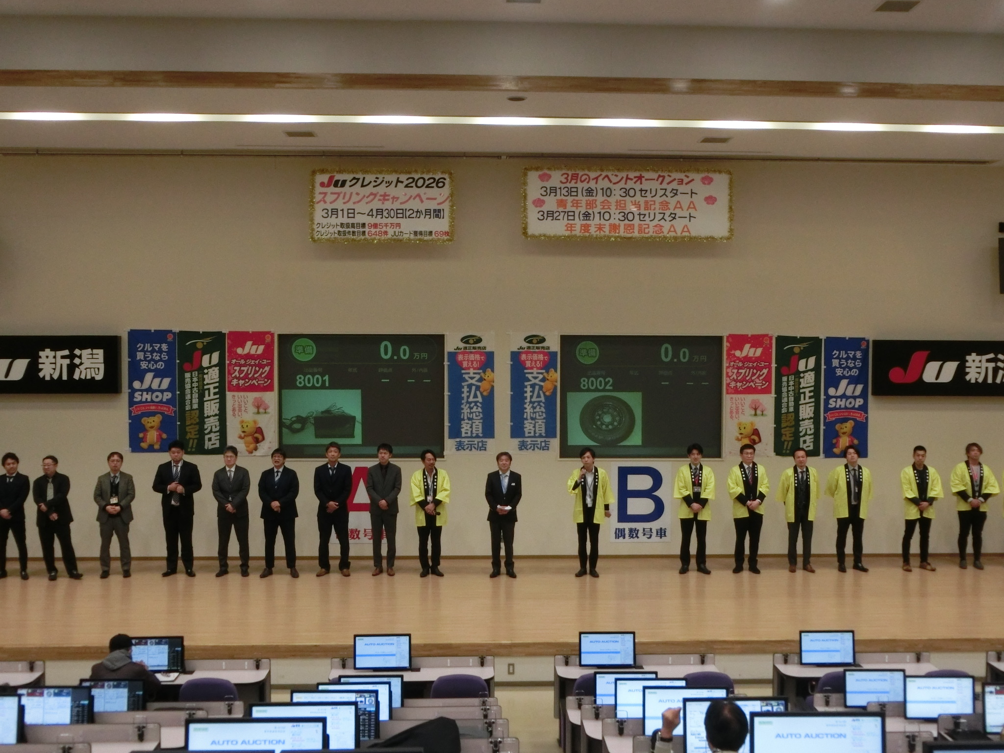 JU新潟(吉沢一孝理事長)は、「令和7年度第3回JU新潟青年部会担当記念BIG AA(オートオークション)」を開催した。出品台数は昨年を上回る1475台で、成約率は75.6%だった。3月13日に開催されたAA前のセレモニーでは、吉沢理事長や...