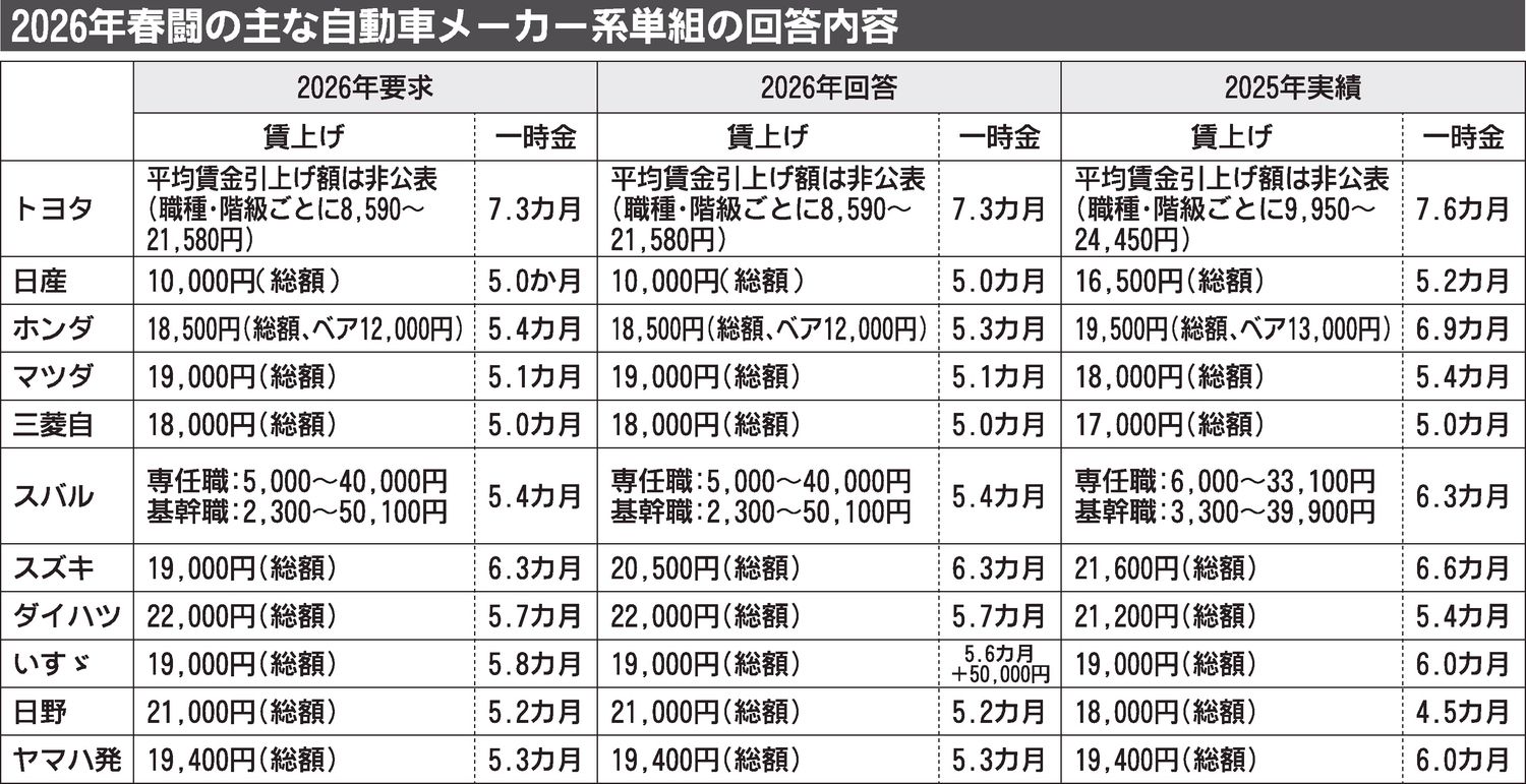 〈2026春闘〉自動車メーカー、初の全社満額回答 逆風下でも「人への投資」緩めず