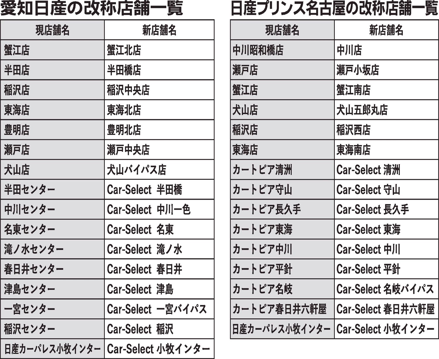 4月1日に発足する日産愛知販売(神田昌明社長)は、既存の計31店舗の名称を変更する。愛知日産(同社長、名古屋市熱田区)と日産プリンス名古屋(同社長、同千種区)の統合に伴い、名称が似ている店舗名を変更し、顧客にとっての分かりやすさを高める。...