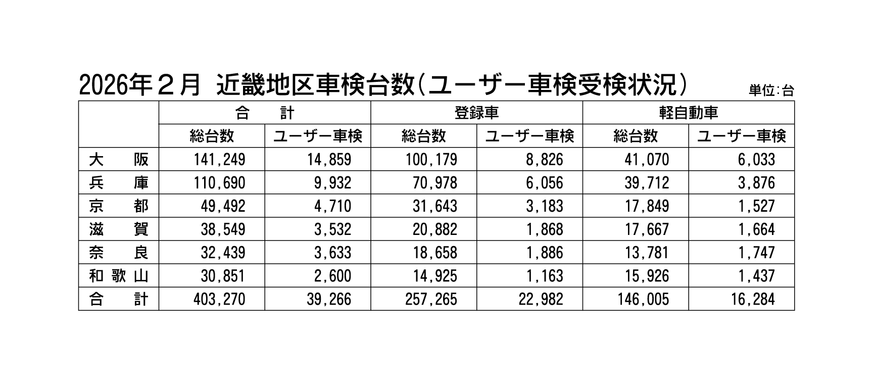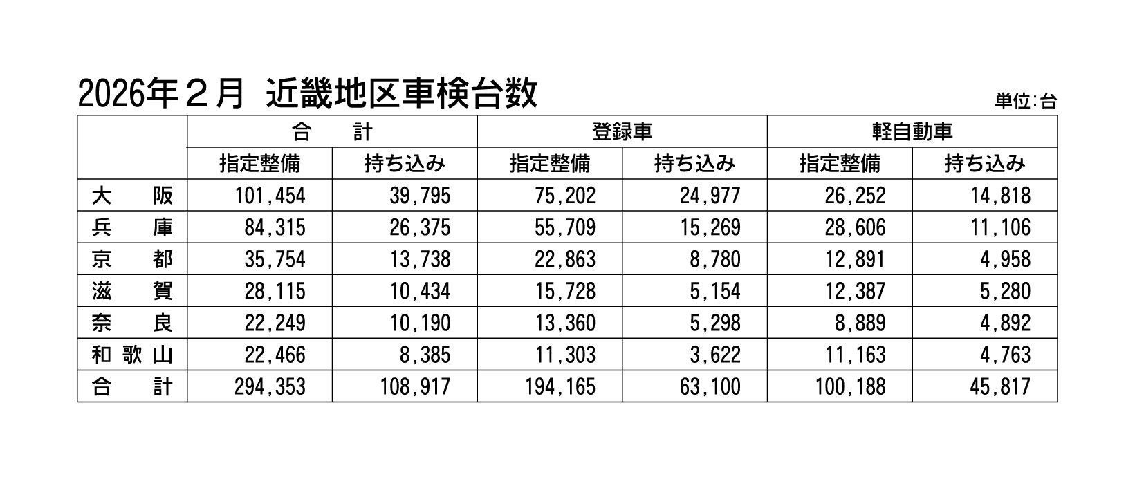 近畿の2月の車検台数は2カ月ぶりプラス、登録車と軽ともに増加
