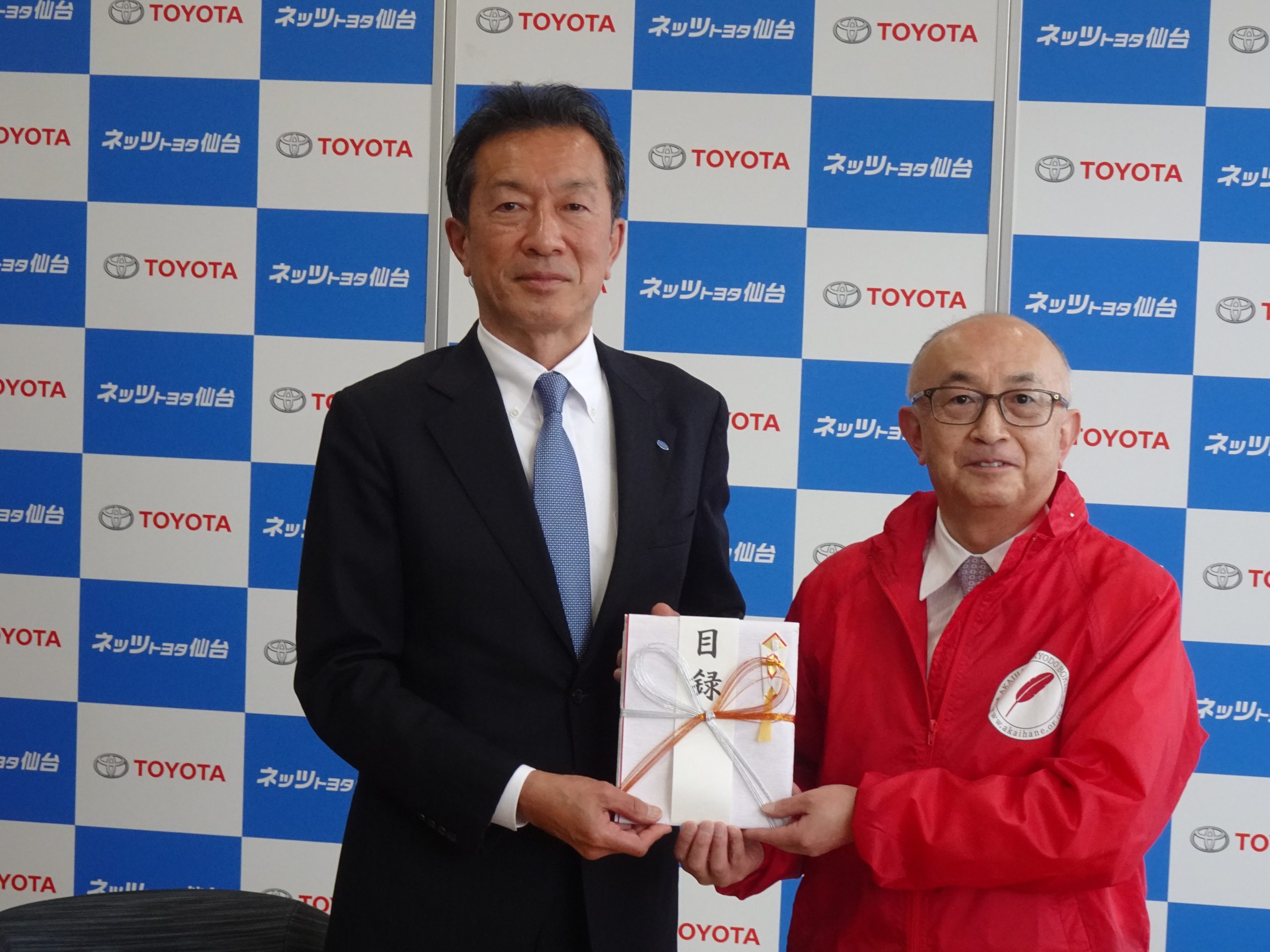 ネッツトヨタ仙台(三浦勇治社長、仙台市宮城野区)は宮城県共同募金会(佐々木均会長)に113万3000円を寄付した。同社日の出店で贈呈式を行い、三浦社長が佐々木会長に目録を手渡した。浄財は店舗のチャリティーイベントや飲料自動販売機の売り上げを...