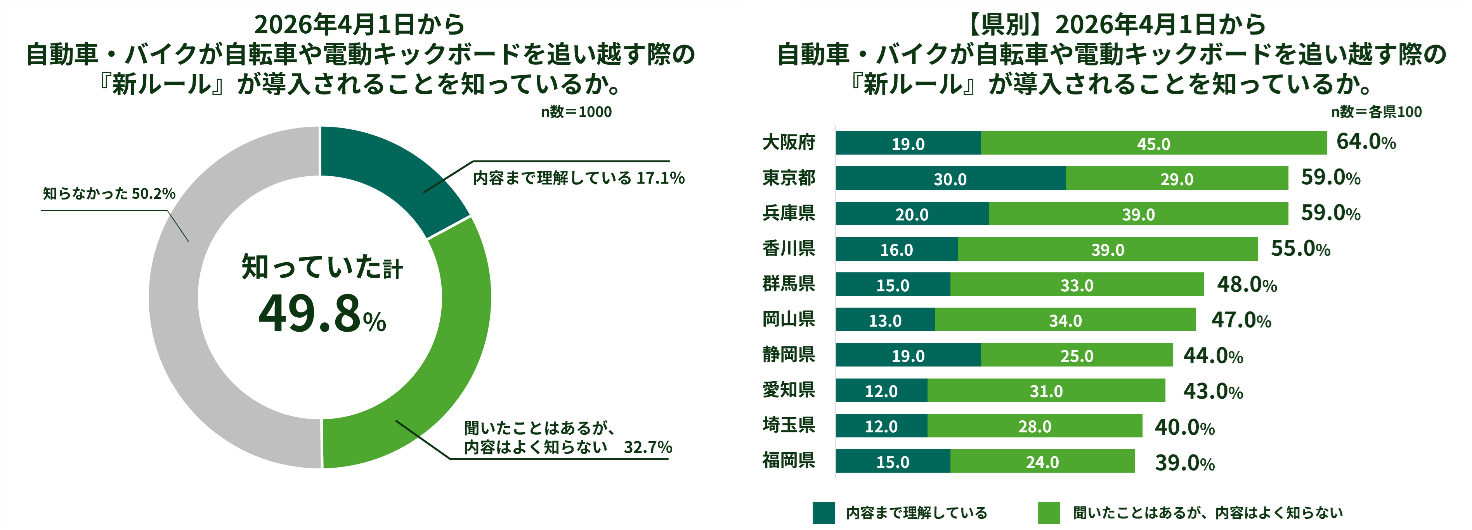 4月1日に改正道路交通法が施行され自転車の交通ルールが変わるのを前に、三井住友海上火災保険がドライバーに実施したアンケートによると、車で自転車を追い越す際の新ルールについて6割が守れるか不安を感じていることが分かった。警察庁は自転車や電動キ...