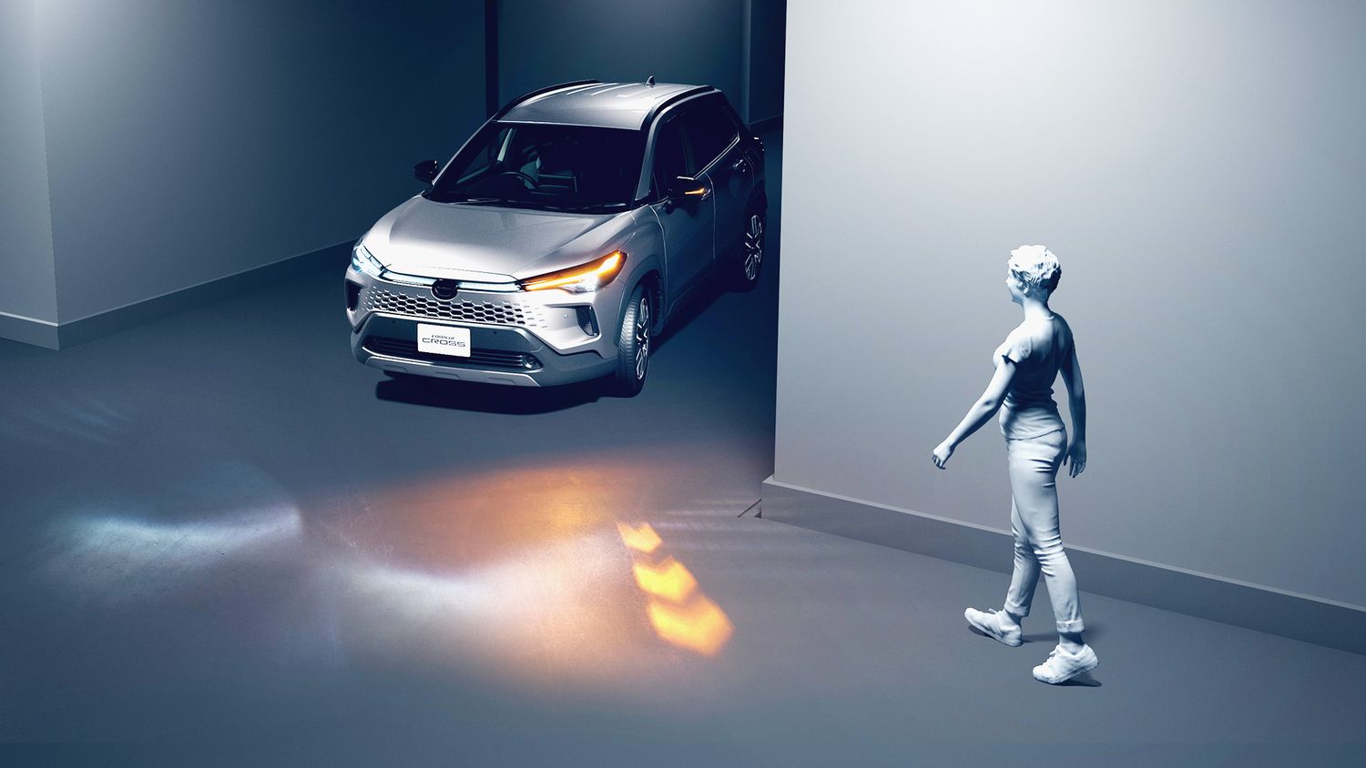 トヨタ、ウインカーに合わせて路面に光の矢印を照射 カローラクロスに採用