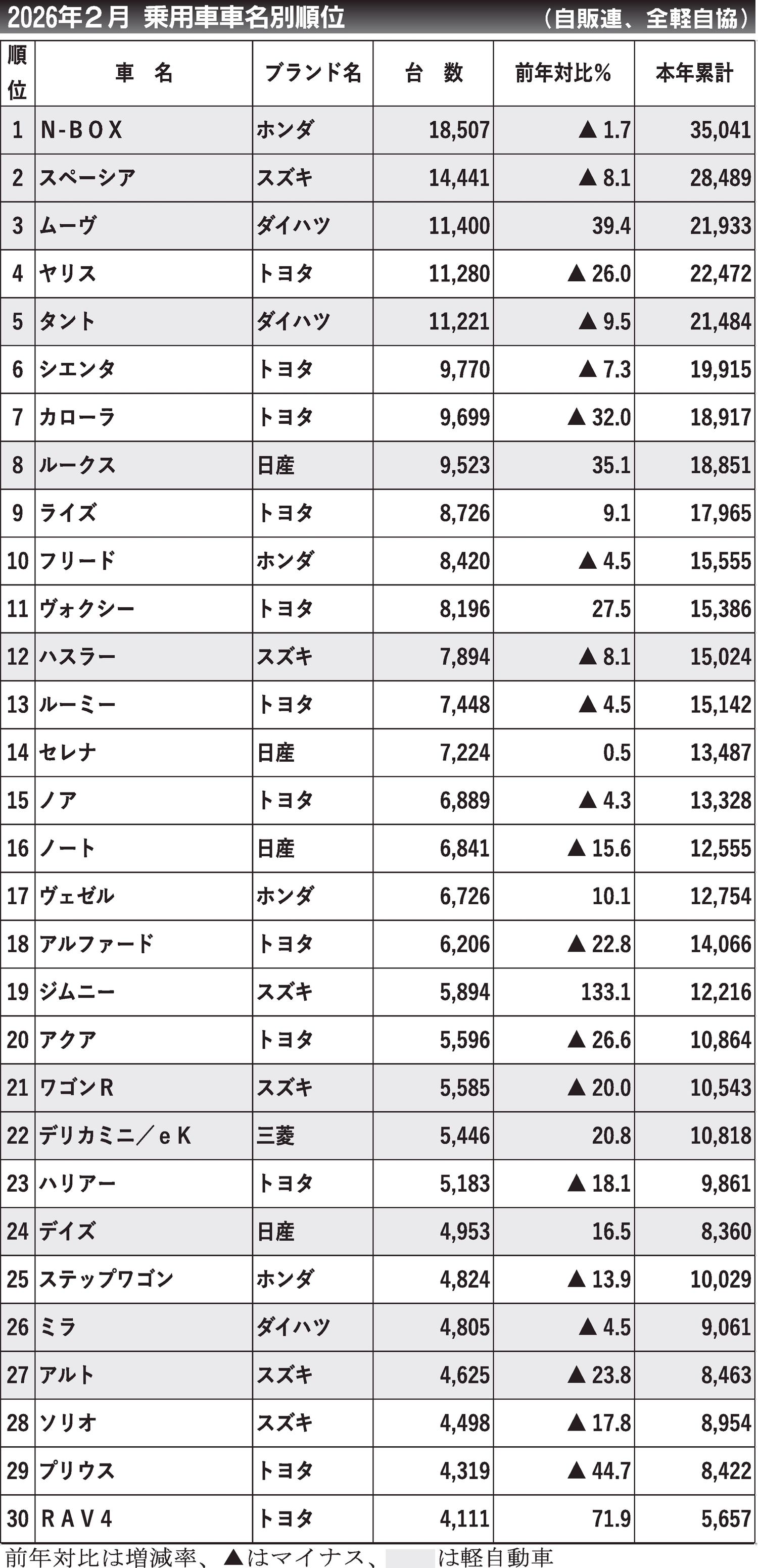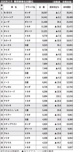 〈2026年2月 乗用車車名別順位〉