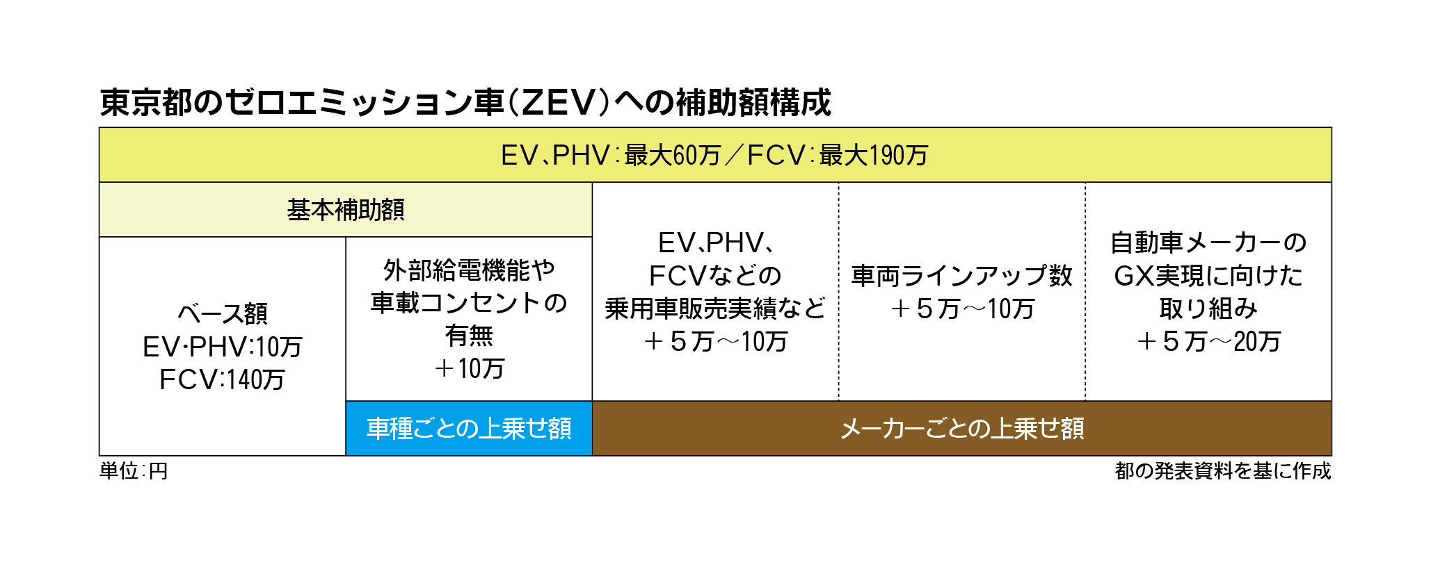 東京都、EVなどの補助金発表 トヨタ、ホンダは増 マツダ、VW、BYDは減