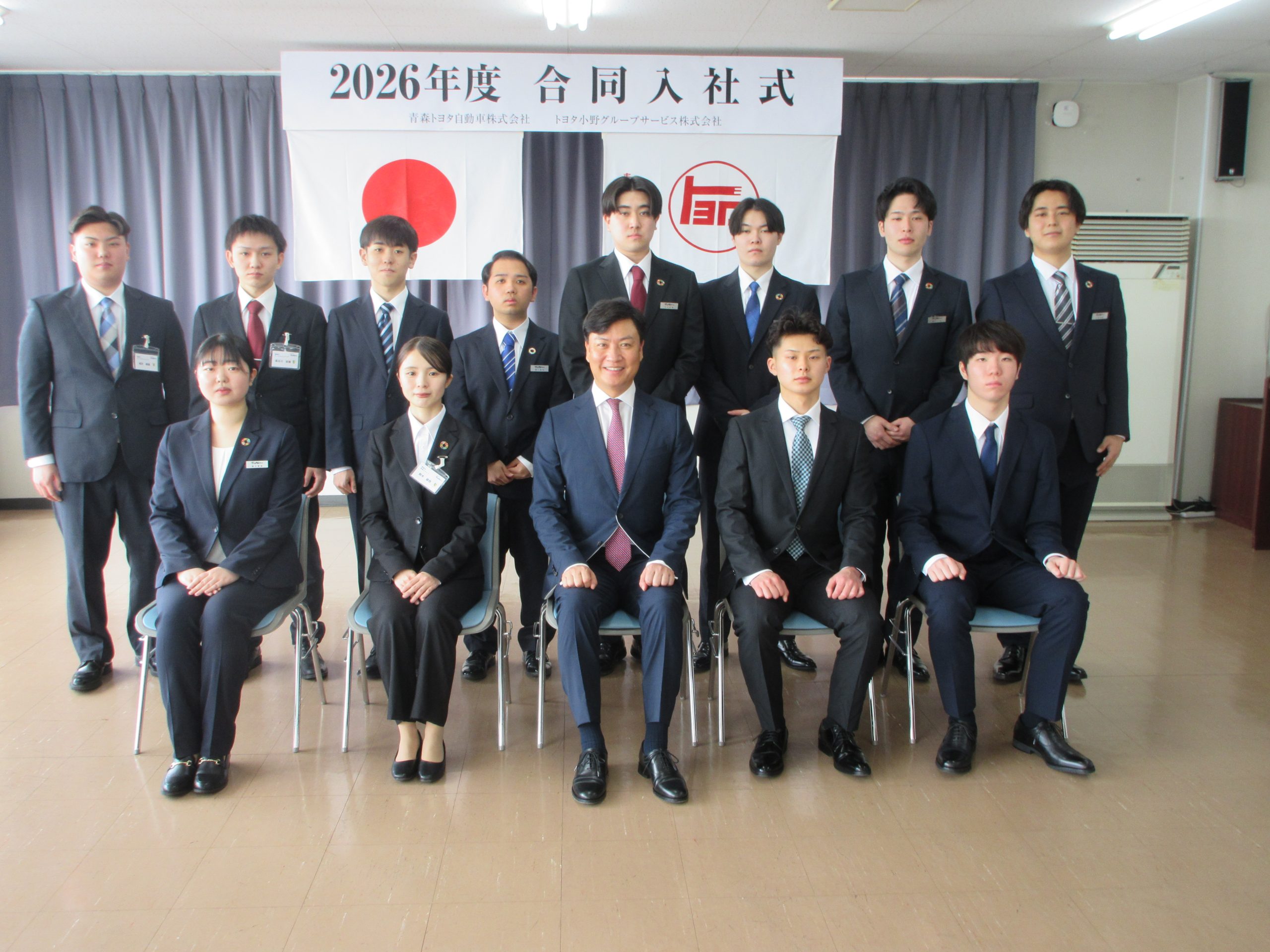 青森トヨタ(小野大介社長、青森市)、トヨタ小野グループサービス(同、青森県十和田市)は、青森トヨタ本社で2026年度の入社式を開催した。2社の役員が見守る中、小野社長が新入社員に辞令を交付した。入社式は4月1日に行った。新入社員の内訳は、青...