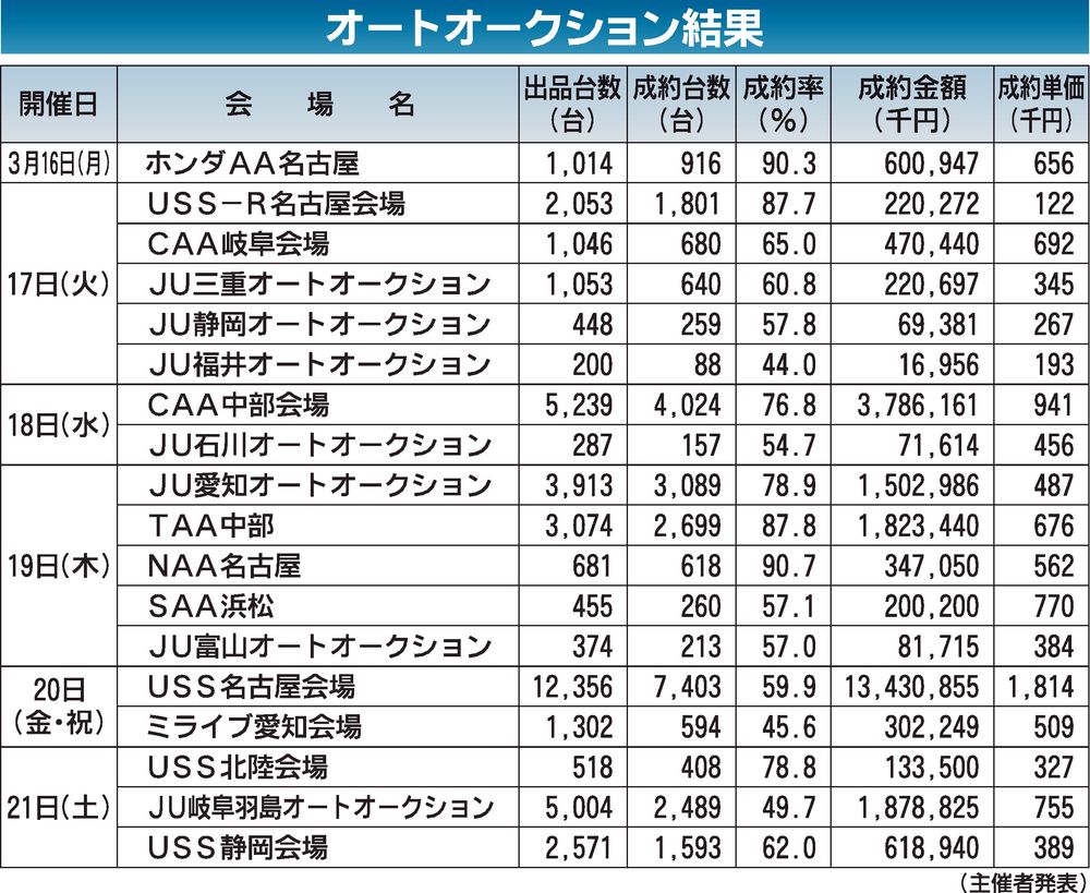 〈オートオークション結果〉中部地区 2026/3/16~21