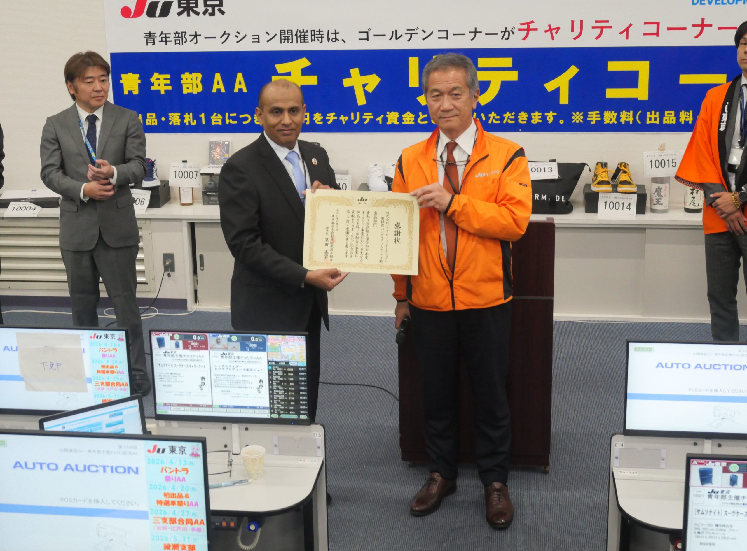 JU東京(黒田泰男理事長)は、2026年度初のオークション「JU関連協リレー・青年部主催チャリティ記念AA(オートオークション)」を開催した。出品台数は2409台、成約率は60.8%だった。4月6日の競り開始前のセレモニーで、黒田理事長は「...
