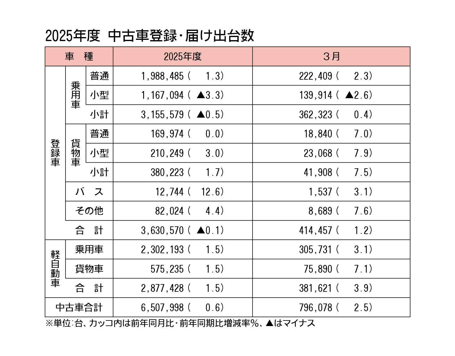 2025年度の中古車登録・届け出台数、3年連続プラス 軽が全体を下支え