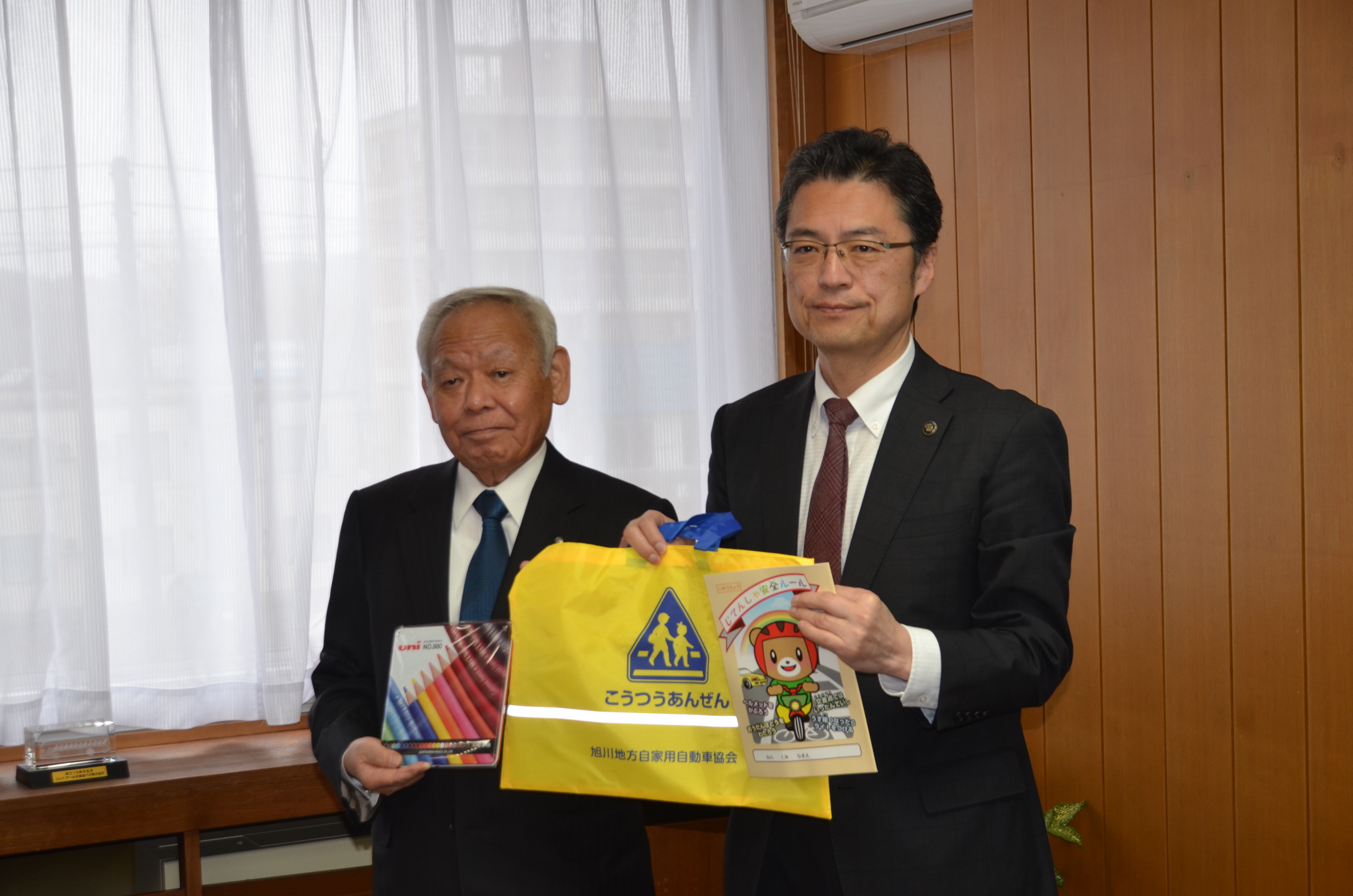 旭川自家用協会、新入学児童向けの安全用品を寄贈