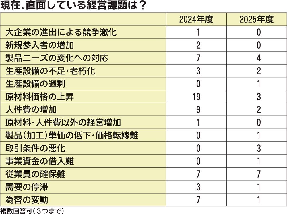 全国自動車用品工業会(JAAMA、加藤学理事長)がまとめた「2025年度全国自動車用品工業会実態調査」によると、会員企業が人材不足に直面している実態が明らかになった。有効回答のうち、約7割が前期と比べて従業員数が減少した。経営課題を問う質...