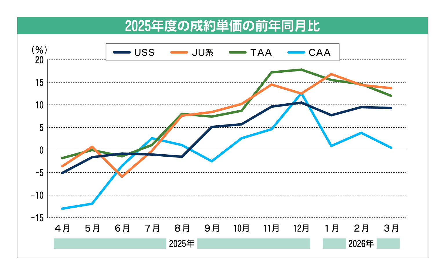 AA主要4事業者の2025年度実績、3事業者の落札価格が過去最高 26年3月は中東情勢の影響少なく