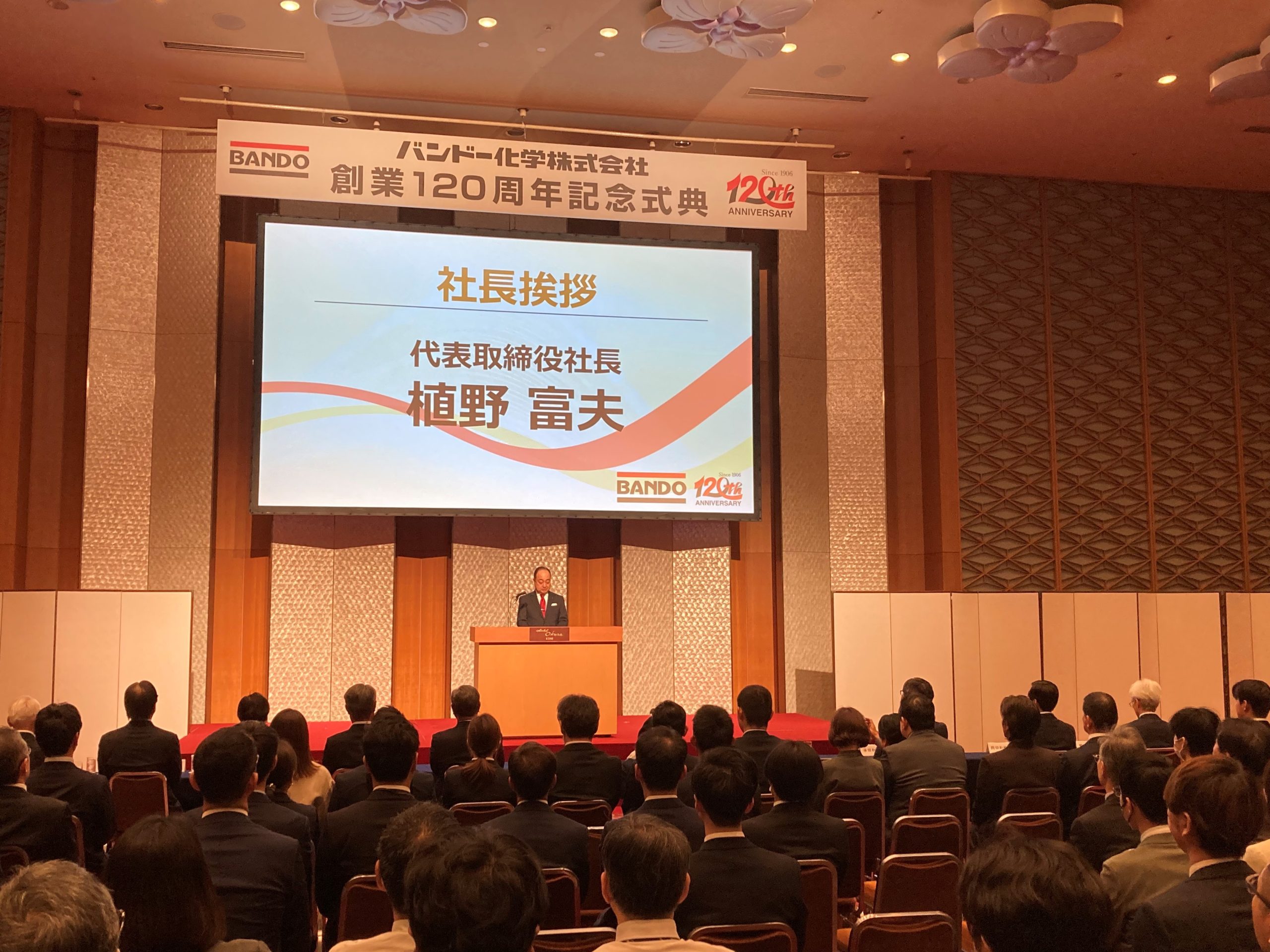 バンドー化学は4月14日、「創業120周年記念式典」を神戸市内のホテルで行った。植野富夫社長ら役員や関西在勤の従業員など計約400人が参加した。国内8拠点の従業員もオンラインで視聴した。植野社長は「社会課題の解決につながる製品の創出、圧倒的...