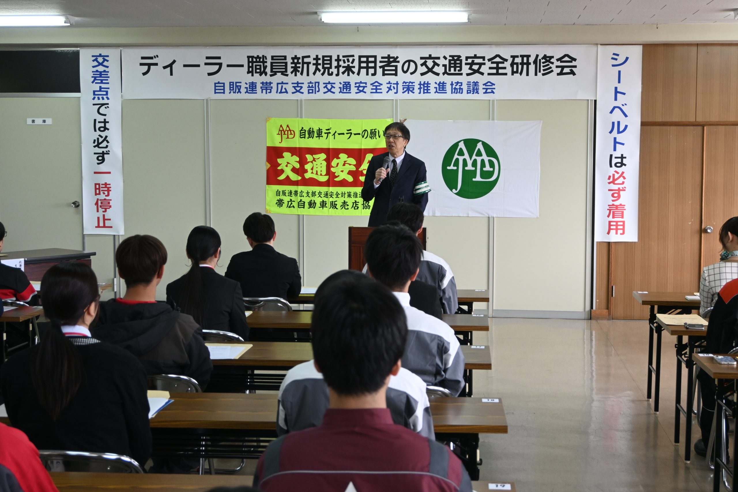 自販連帯広支部交通安全対策推進協議会(若林剛会長)は、帯広自動車販売店協会会館(北海道帯広市)で会員ディーラーの新入社員を対象に交通安全研修会を開催した。14社から37人が参加した。同研修会は4月10日に実施した。あいさつに立った若林会長は...