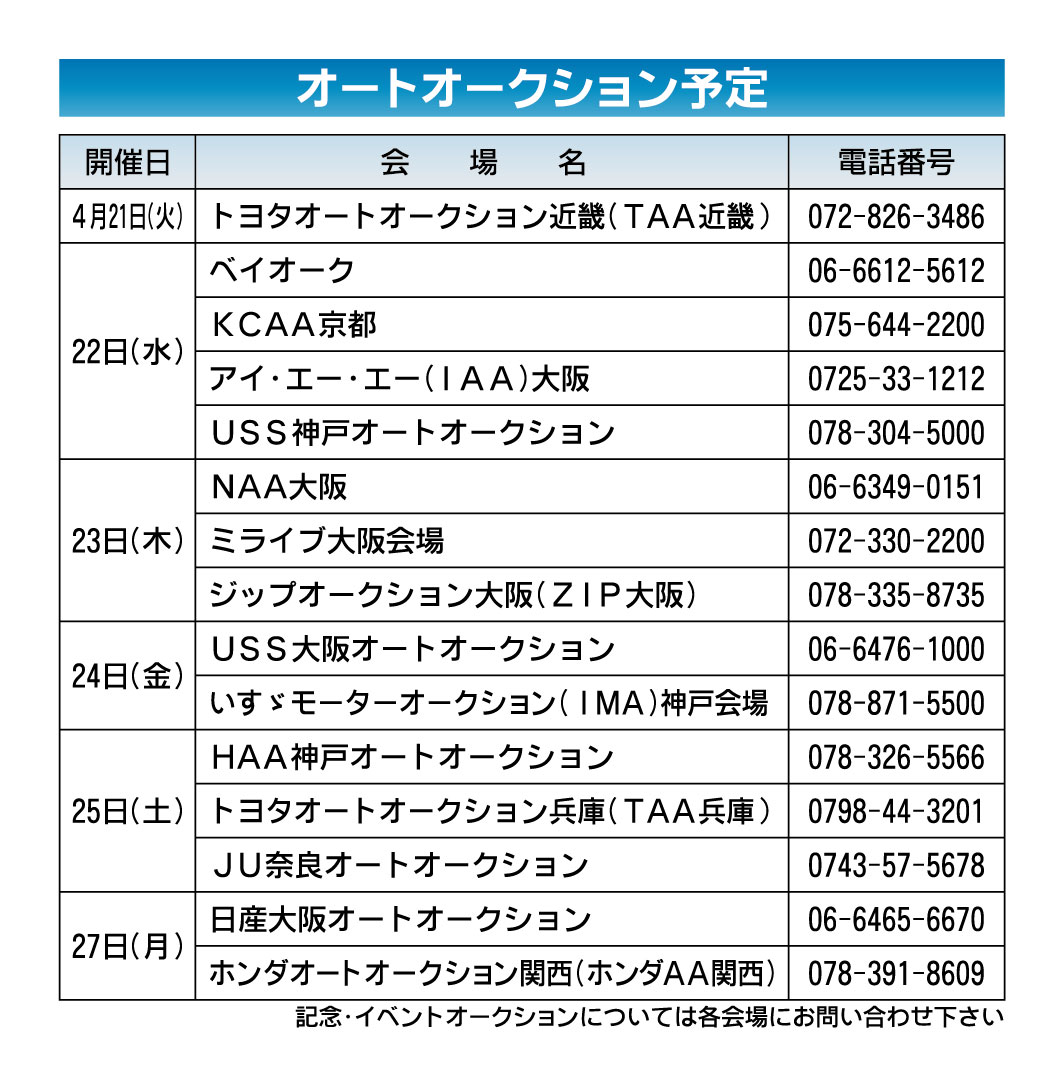 〈オートオークション結果〉近畿地区 2026/4/6~11