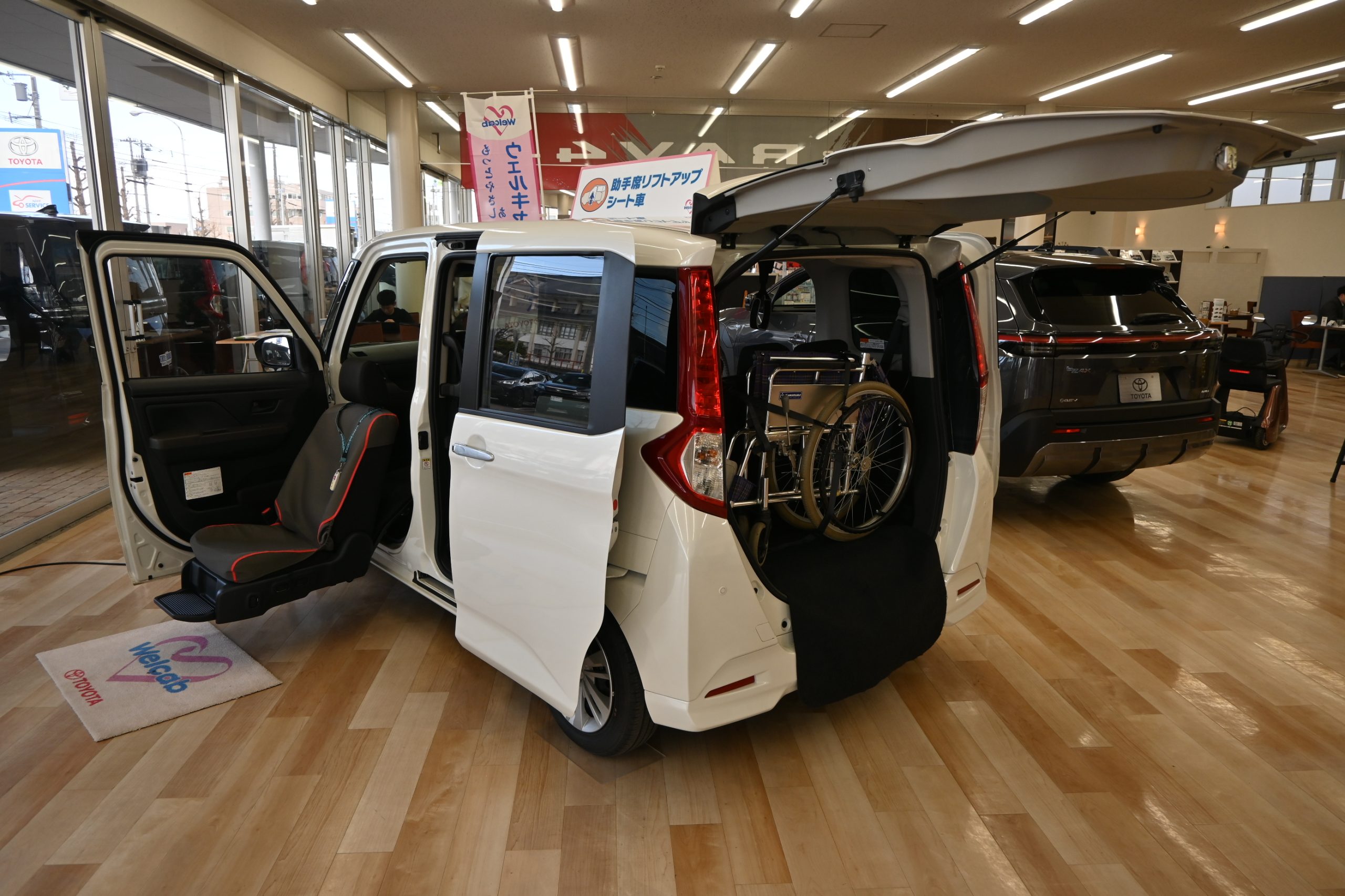 ネッツトヨタ札幌(鎌田直之社長、札幌市東区)は、ネッツプラザあつべつ(同市厚別区)でトヨタの福祉車両「ウェルキャブ」の展示会を開催した。2台を置き、専門スタッフが顧客対応に当たった。展示会は4月11、12日に実施した。ショールームの一角に、...