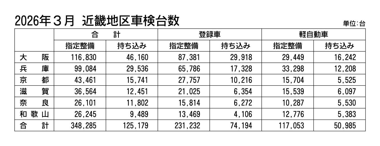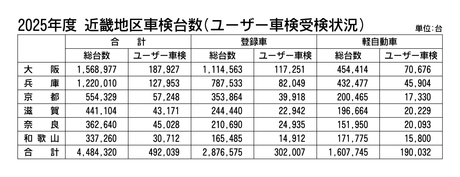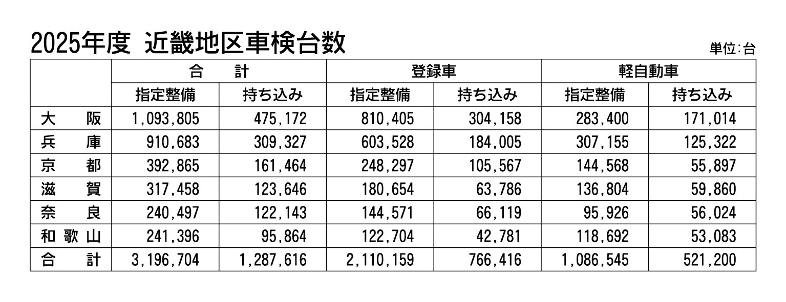 近畿2府4県の2025年度車検台数は2年連続増、受検可能期間の拡大も要因か