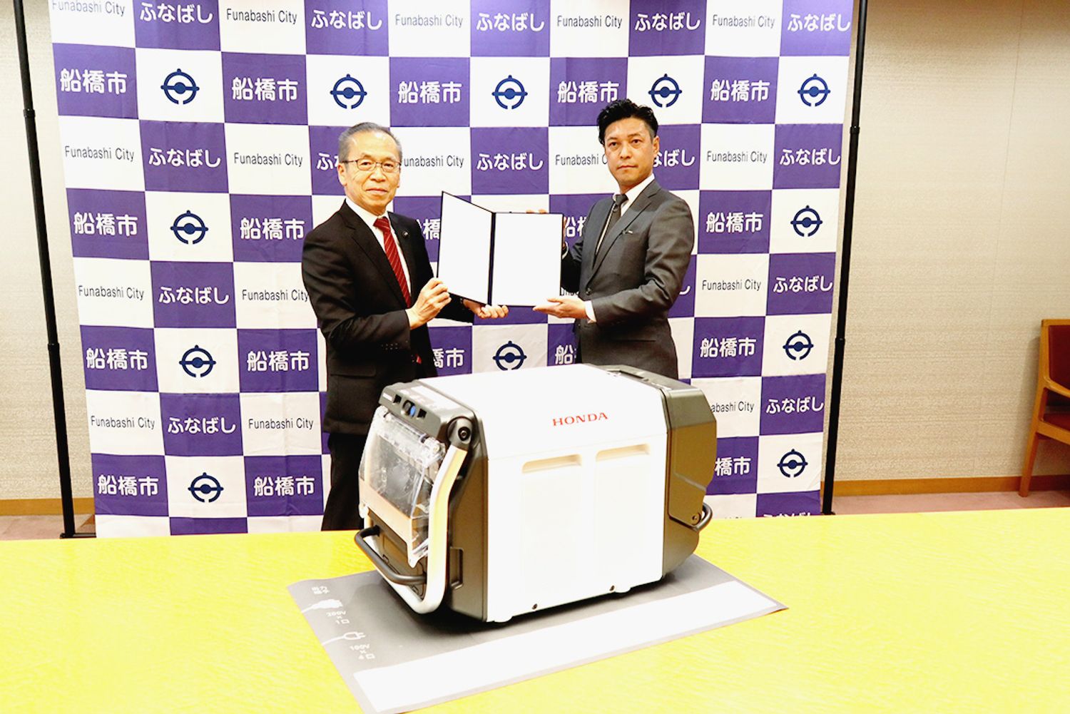 【千葉】ホンダベルノ市川(ホンダカーズ市川、中川史昭社長、千葉県船橋市)は、船橋市と災害時の電気自動車(EV)などからの電力供給に関する協定を結んだ。その締結式が船橋市湊町の市役所庁舎で行われた。 同社が所有するビークル・ツー・ロード(V...