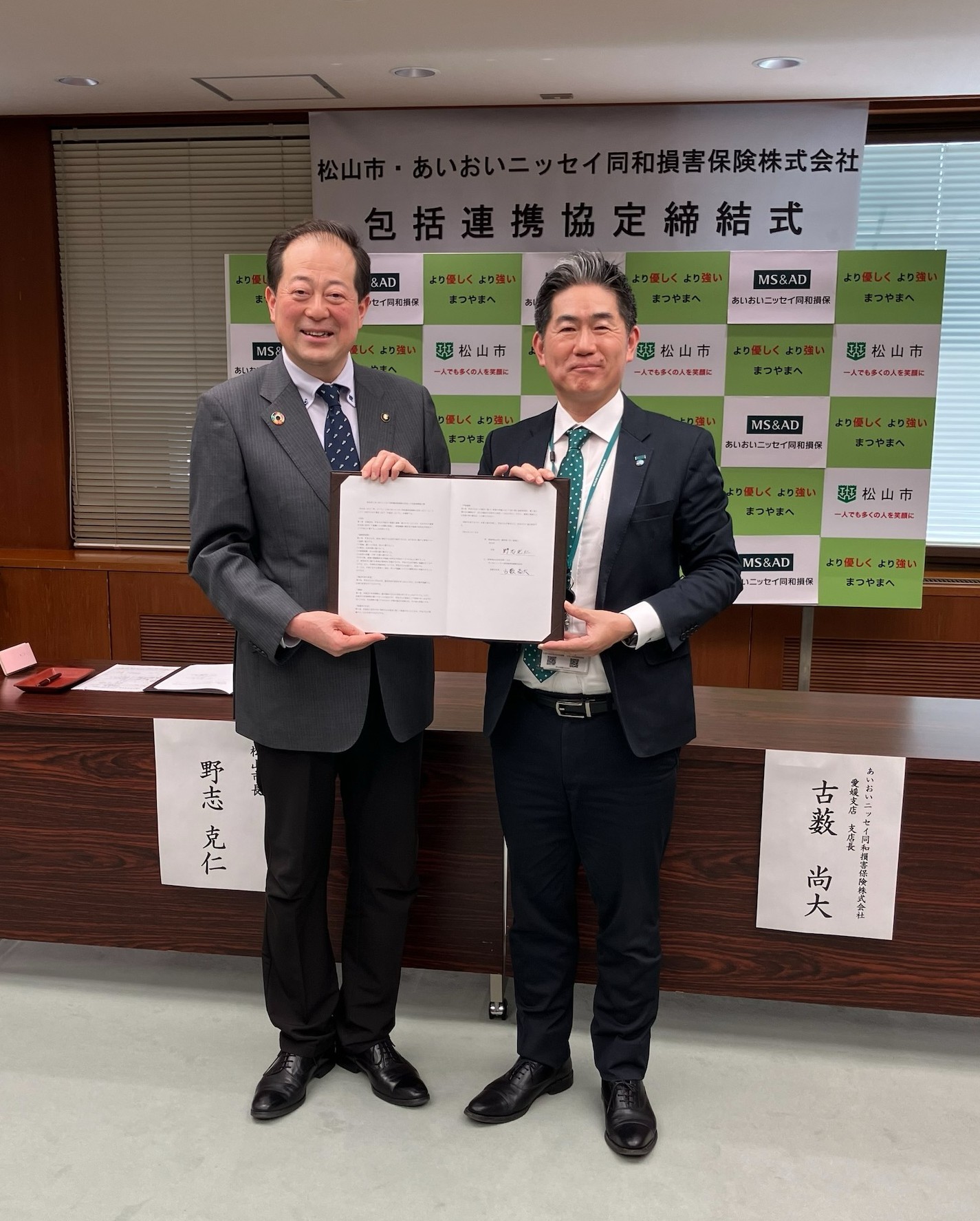 あいおいニッセイ同和損害保険愛媛支店(古薮尚大支店長、松山市)と松山市は、交通安全など地域課題への適切な対応による活性化や市民サービス向上を目的とした「包括連携協定」を締結した。4月16日付。協定にかかる取り組みとして、2026年5月1~3...