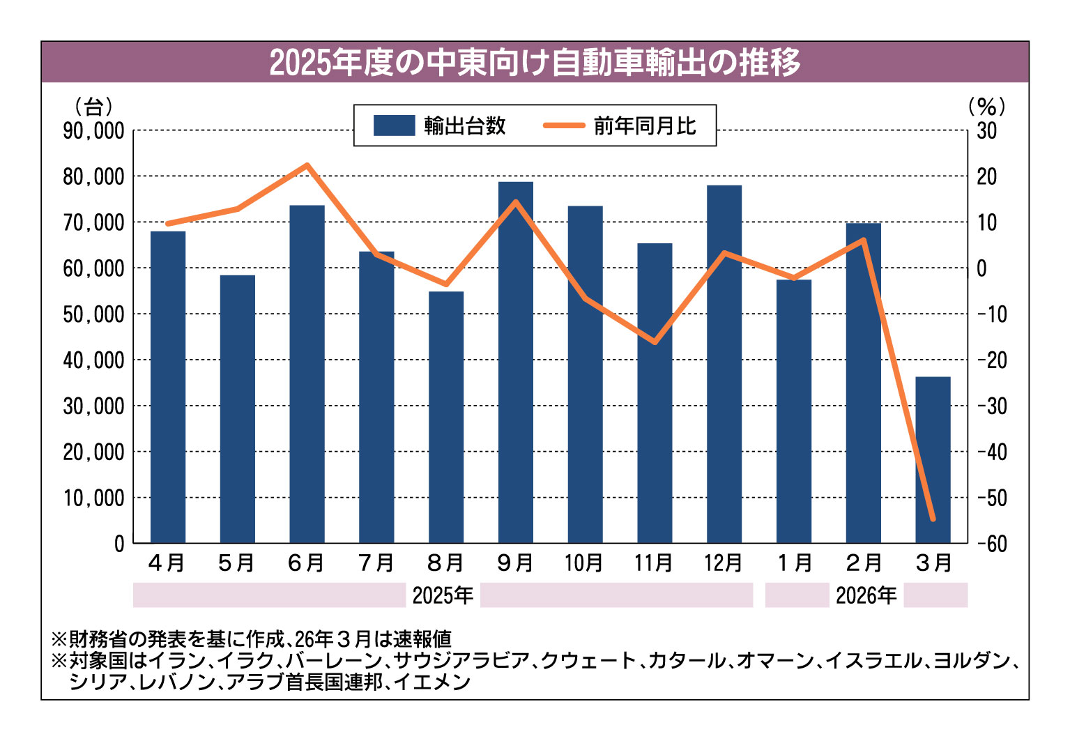 2025年の自動車輸出、2年連続のマイナス 欧州と大洋州が大幅減 米国は1.7%減 自工会発表