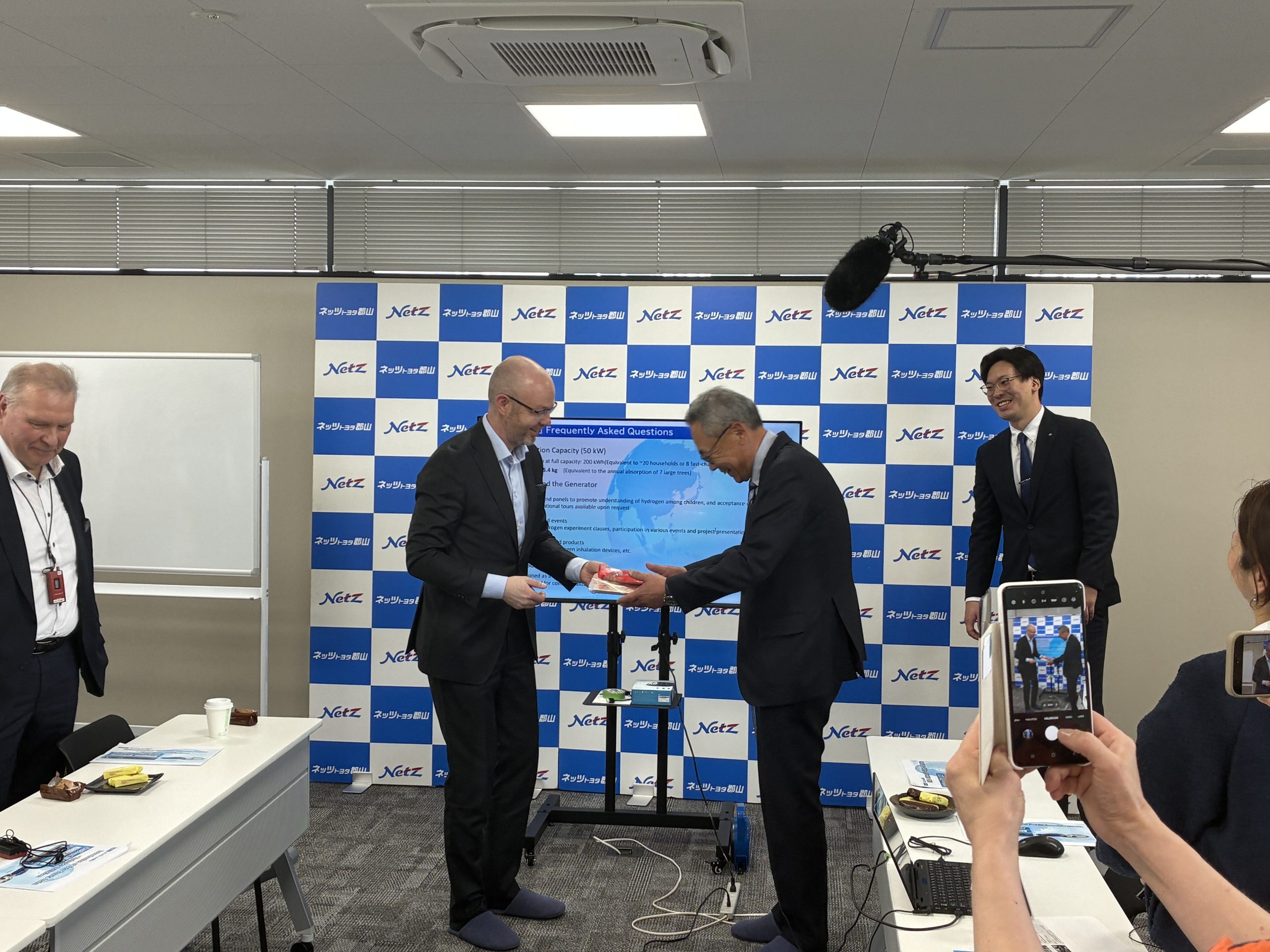 水素経済の構築を目指すフィンランドのユヴァスキュラ市(ティモ・コイヴィスト市長)が、水素の利活用に力を入れるネッツトヨタ郡山(小室和人社長、福島県郡山市)の安積店を訪問、視察した。小室社長らが訪問団を迎え入れ、「定置式水素発電機」設備の導入...