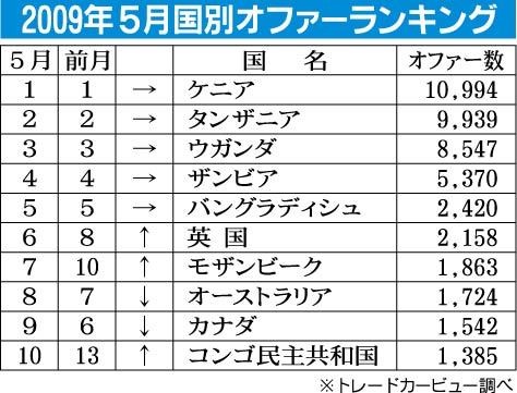 カービューは、自社で運営する中古車輸出支援サイト「トレードカービュー」に海外から寄せられた5月のオファー(問い合わせ)数を国別ランキングにまとめた。これによるとオファー数のトップは1万994件の「ケニア」で、次いで「タンザニア」「ウガンダ...