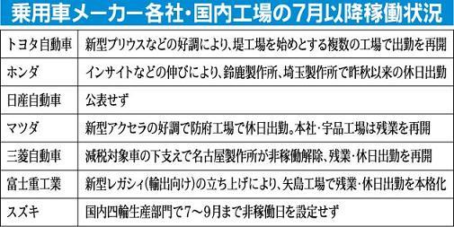 エコカー減税や環境対応車購入補助などの政府支援、ハイブリッド車(HV)のブームを受け、日系自動車メーカー各社の国内生産が復調傾向にある。2009年1、2月がピークとなった減産時には全社が非稼働日などを設定したが、足元では大半のメーカーがラ...