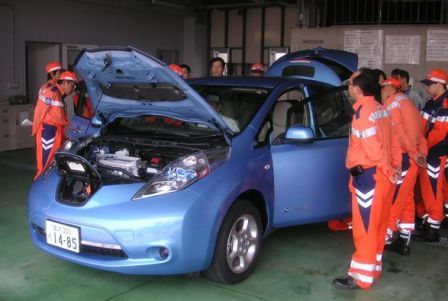 【金沢】日本自動車連盟(JAF)石川支部(要明英二支部長)はこのほど金沢市の同支部で電気自動車の研修会を行った。同支部のロードサービス隊員15人と指定工場から5人、計20人が受講した。 ロードサービス技術の向上を目的としたもので、最新の電...