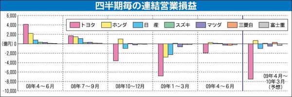 乗用車メーカー2009年4~6月期決算、1~3月期からは改善