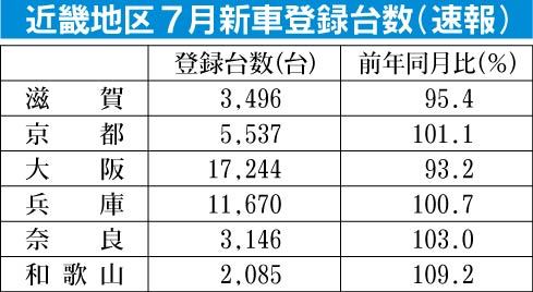 近畿地区7月登録車販売、エコカー需要が押し上げ4府県で前年超え