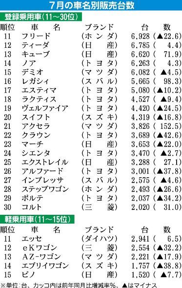 日本自動車販売協会連合会(自販連、天野洋一会長)が6日にまとめた2009年7月の登録乗用車車名別販売ランキングによると、トヨタ自動車の「プリウス」が2万7712台となり、3カ月連続でトップとなった。1~7月の累計販売台数は7万9122台に...