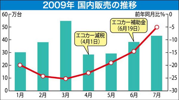 国内新車販売がようやく上向き始めた。エコカー減税と補助金効果で8月販売は約1年ぶりの前年プラスに転じそうだ。メーカー各社からも「少なくとも今期に限っては、あまり心配していない」(マツダの尾崎清CFO=最高財務責任者)との声が出るが、早くも...