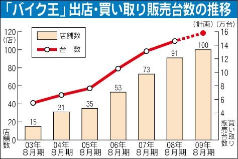 アイケイコーポレーションは19日、バイク買い取り専門店「バイク王小平店」をオープンした。全国100店舗目のバイク王となり、同社が2004年8月期から推進してきた「バイク王100店舗計画」が達成することになる。今後は出店速度を緩め、1店舗当...